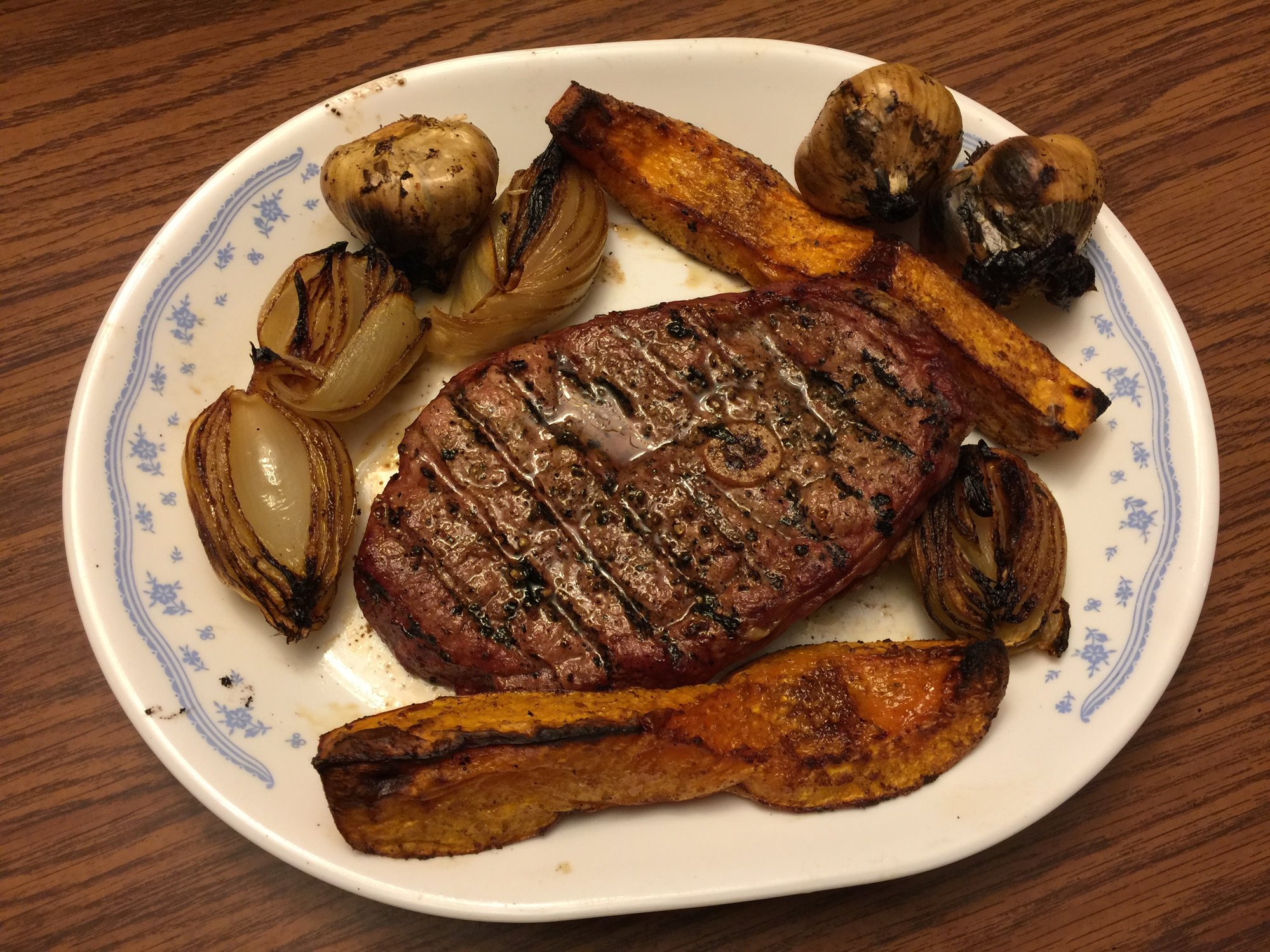 Made a quick dinner tonight, lamb was awesome with roasted butternut squash, onion, garlic and not shown eggplant.