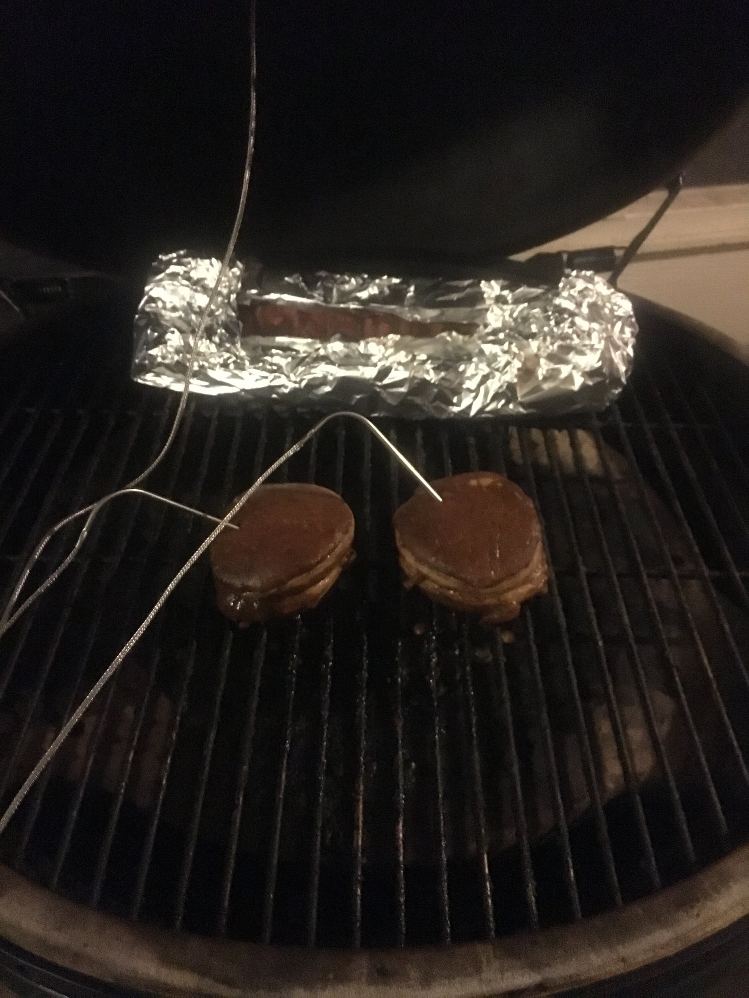 been smoking some ribs for about 3 hours. Going to add some filets to reverse sear in a minute. I've been fighting most of the evening with wifi and router settings on my CyberQ  :o