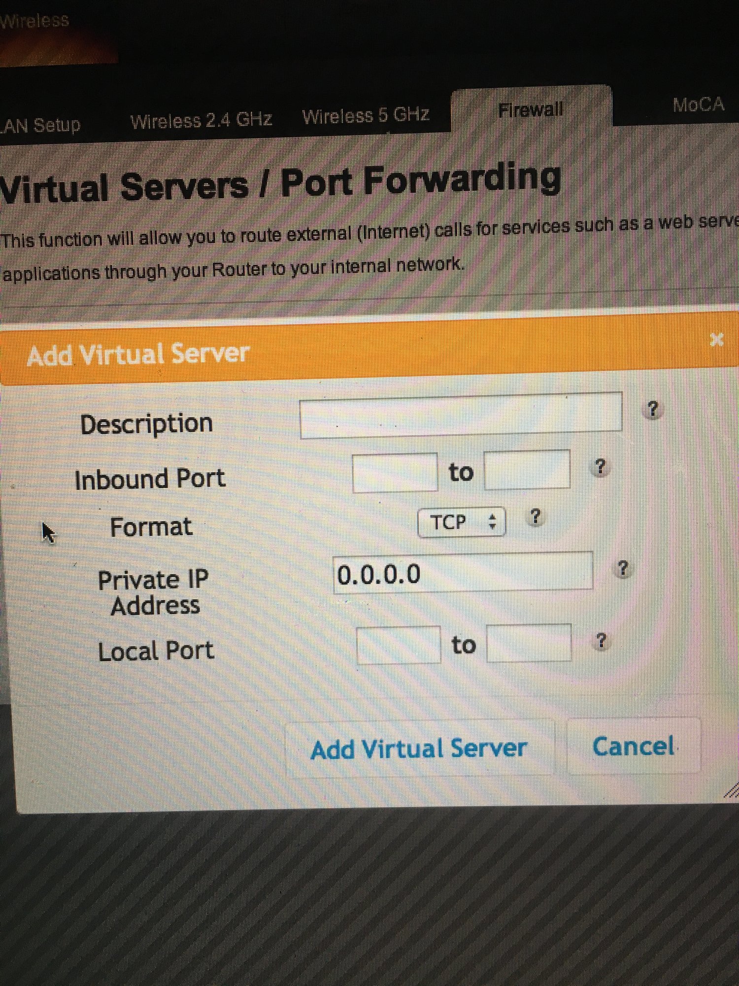 Please post the port forwarding screen. Thanks!Two Large Eggs, 6 gal Cajun Fryer, and a MiniMax in Charlotte, NC - My New Table
