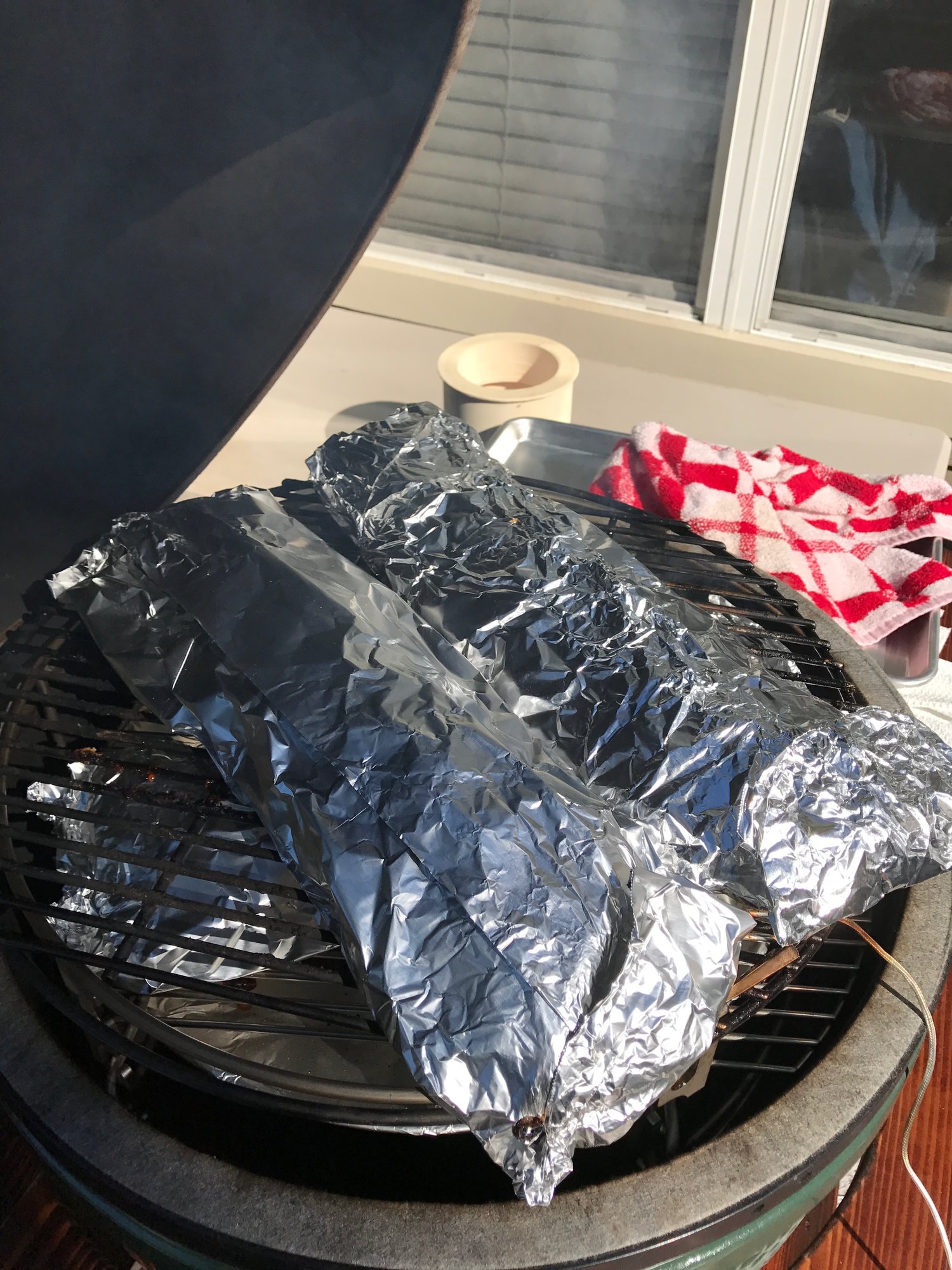 I wanted to  spray the ribs every hour or so like CWM calls for. But' I'm afraid to open the egg to spray.