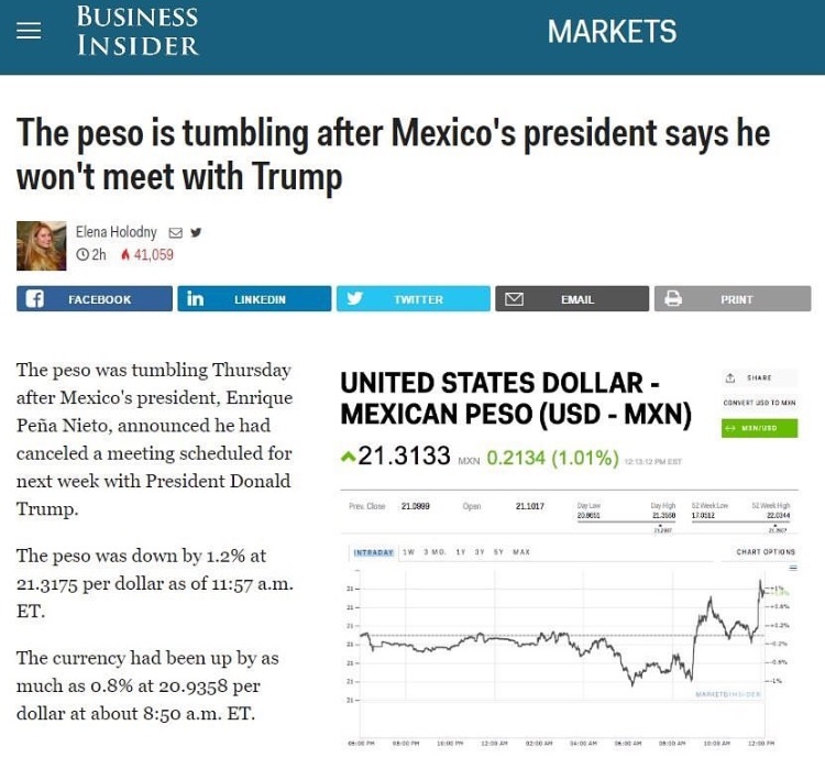 Not speaking for him/her but @Eoin implied that Mexico might retaliate with a like tax on American stuff, soybeans, auto parts, beef etc...