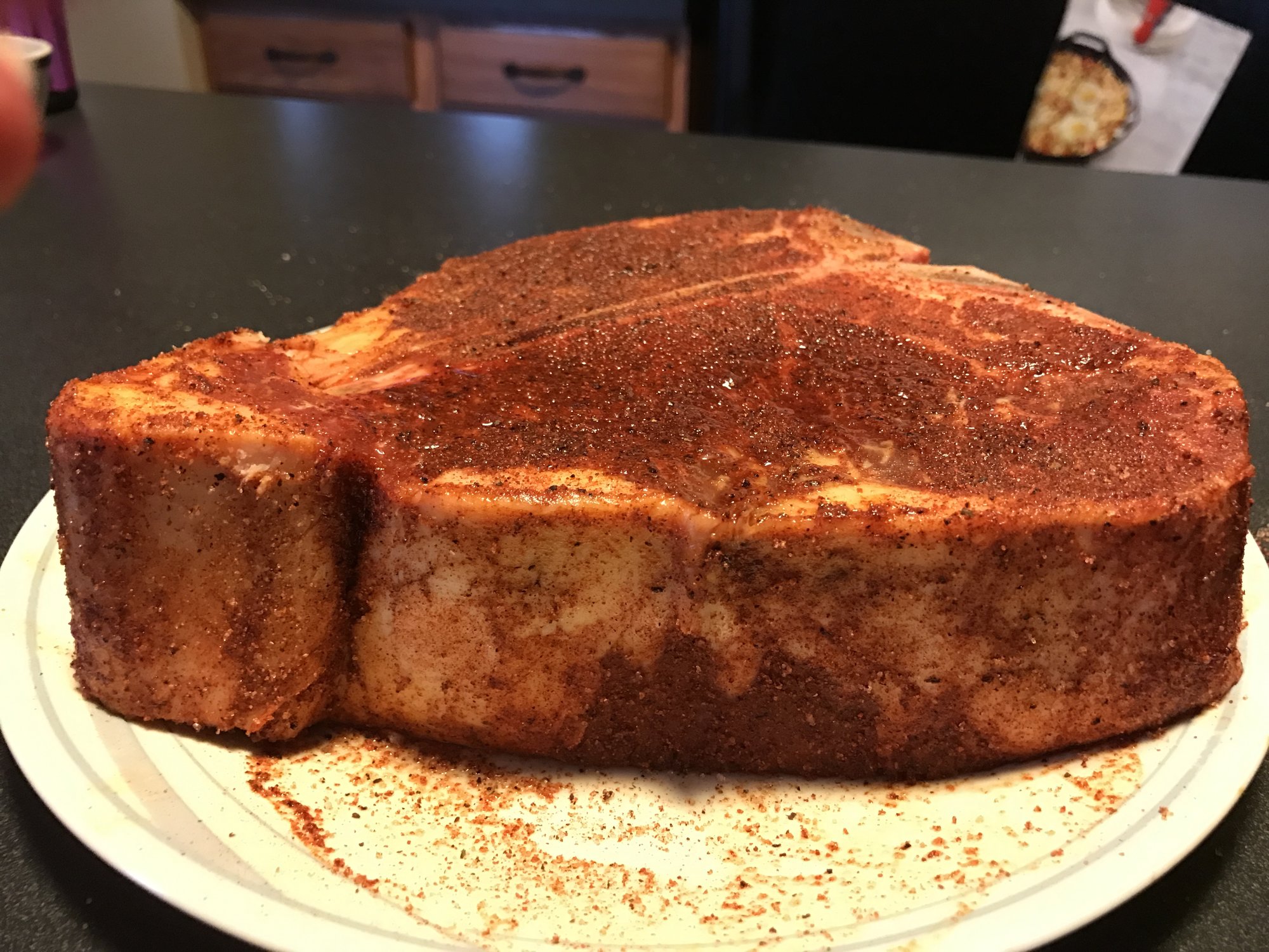 kindaquick14 said:Got a pretty cool gift around Christmas time with a King Cut T-bone from Omaha Steaks. It is a 48 oz monster. I was thinking that I would do this like a prime rib where I start it at a 225 - 250 smoke until 125 internal then pull and reset the egg (medium) to 650 - 700 degrees for a reverse sear.