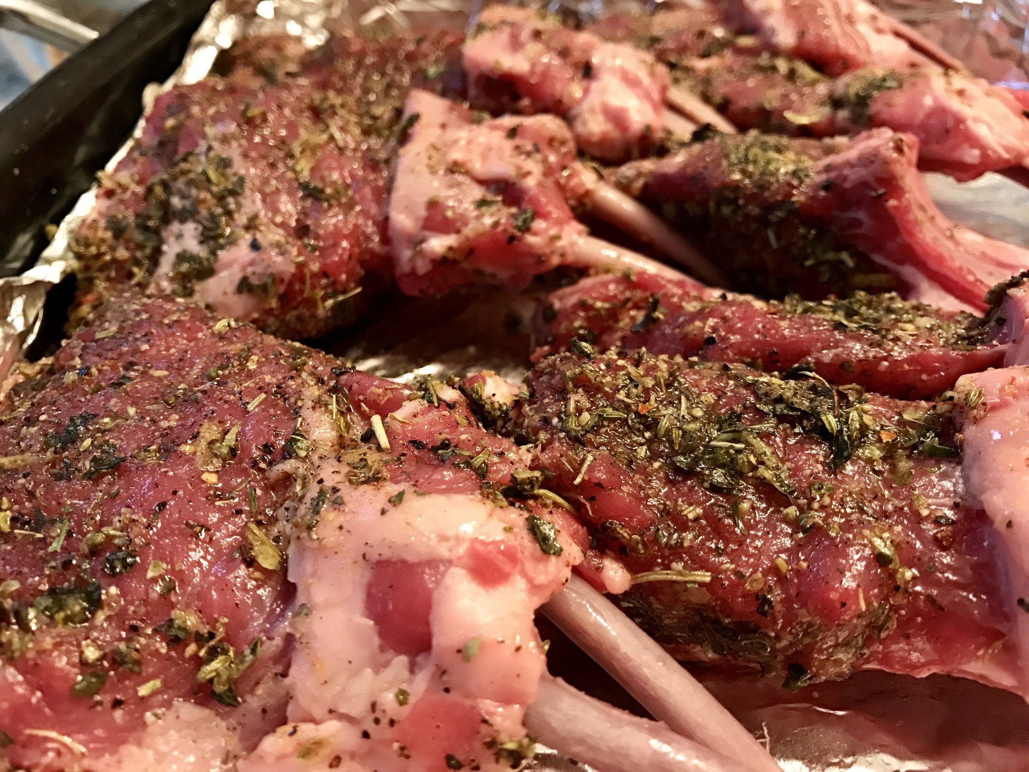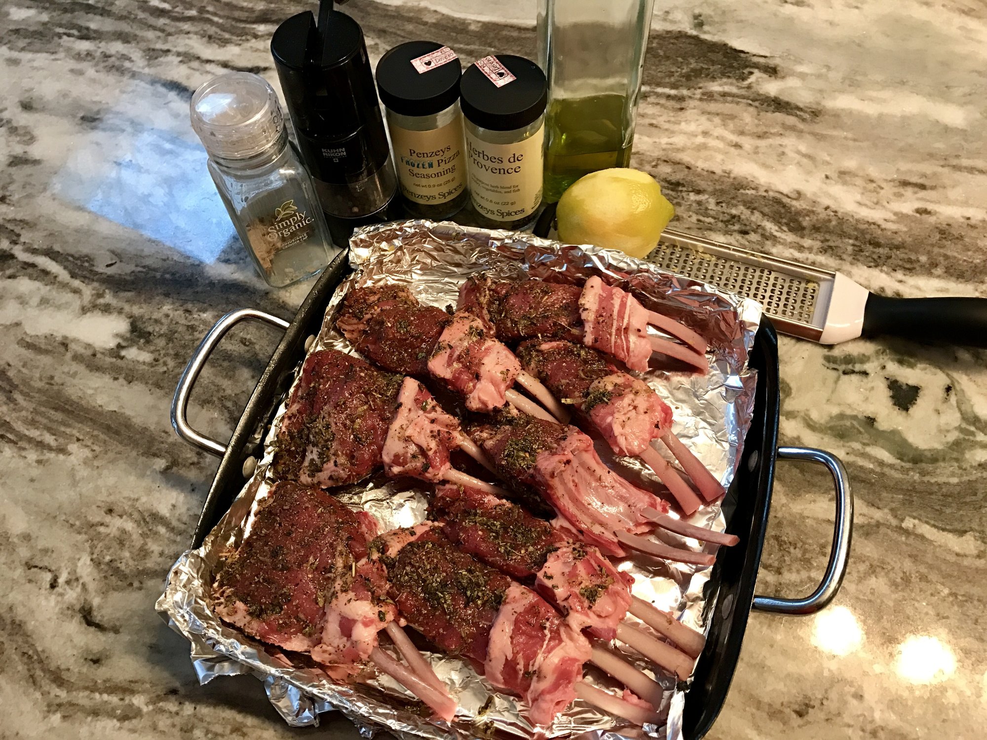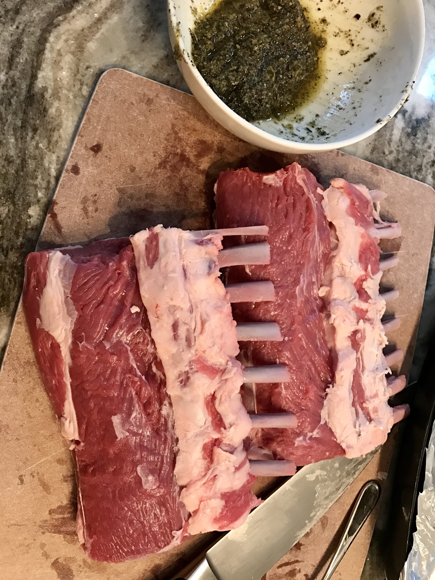 Started with two racks. Trimmed the silver skin off both sides. Cut and rubbed with a wet rub of EVOO, seasoned salt, frozen pizza seasoning, herbs de Provence, cracked black pepper, and lemon zest. Will rest for an hour or so and then grill up. Thinking just a straight up direct grill. Maybe low to start just to get it going and cranking at the end. Sort of a reverse sear maybe. We'll see. I'm kind of making this up as I go. More to come.