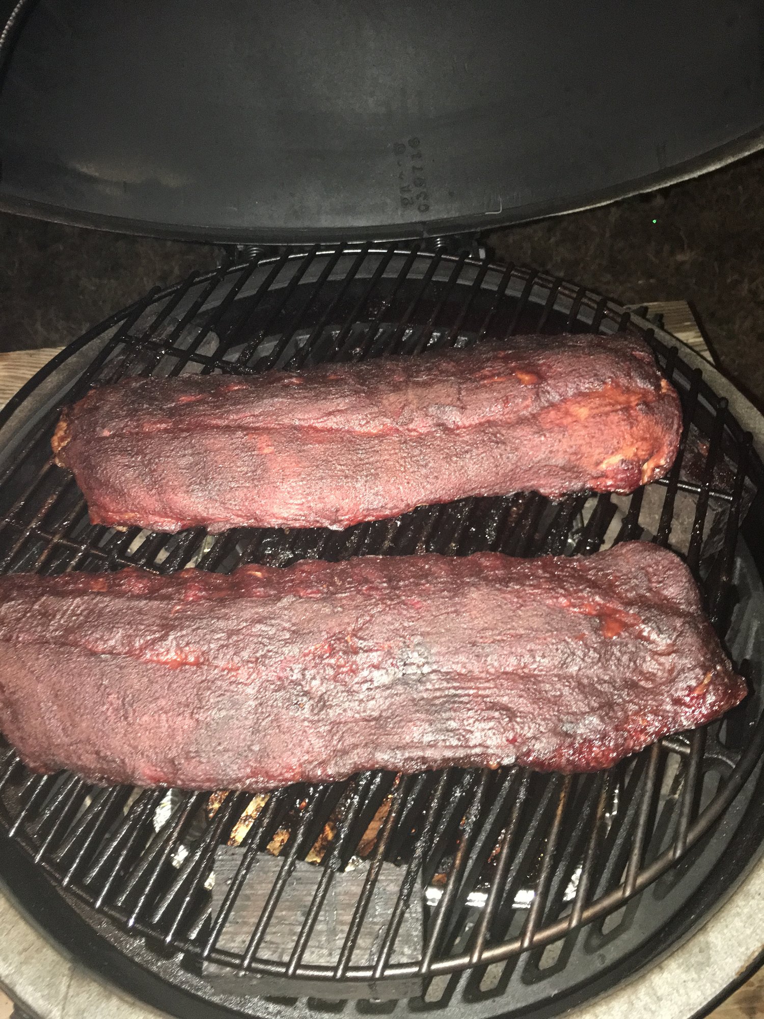 i started in the 3-2-1 club where the 2 hours is in foil and liquid such as apple juice. It's really braising the ribs and they are completely fall off the bone. Sometimes to a fault. Now I'm more of a four hour guy with just rub and when they're about done (see guys above) sauce them and crank up the heat to caramelize the sauce. my family's favorite combo is mickey's coffee rub ( search this forum) and sauced with Sweet baby Ray's for the final 20-30 minutesRichmond and Mathews County, VA. Large BGE, Weber gas, little Weber charcoal. Vintage ManGrates. Little reddish portable kamado that shall remain nameless here. Very Extremely Stable Genius.