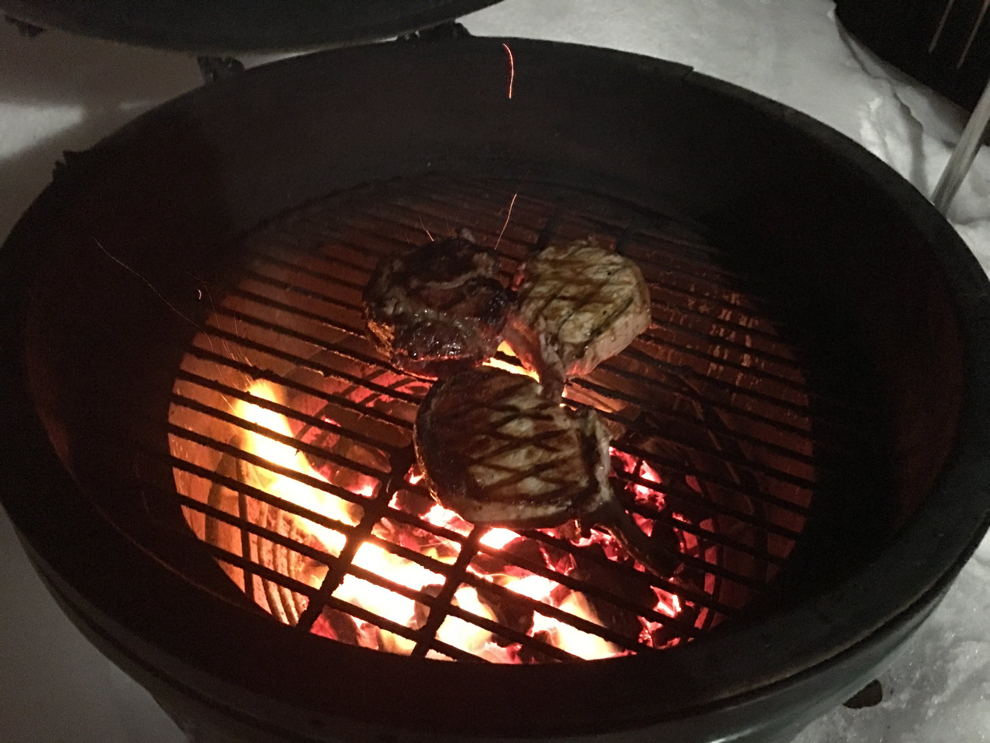 Ribeye cap for me, pork chop for SWMBO.