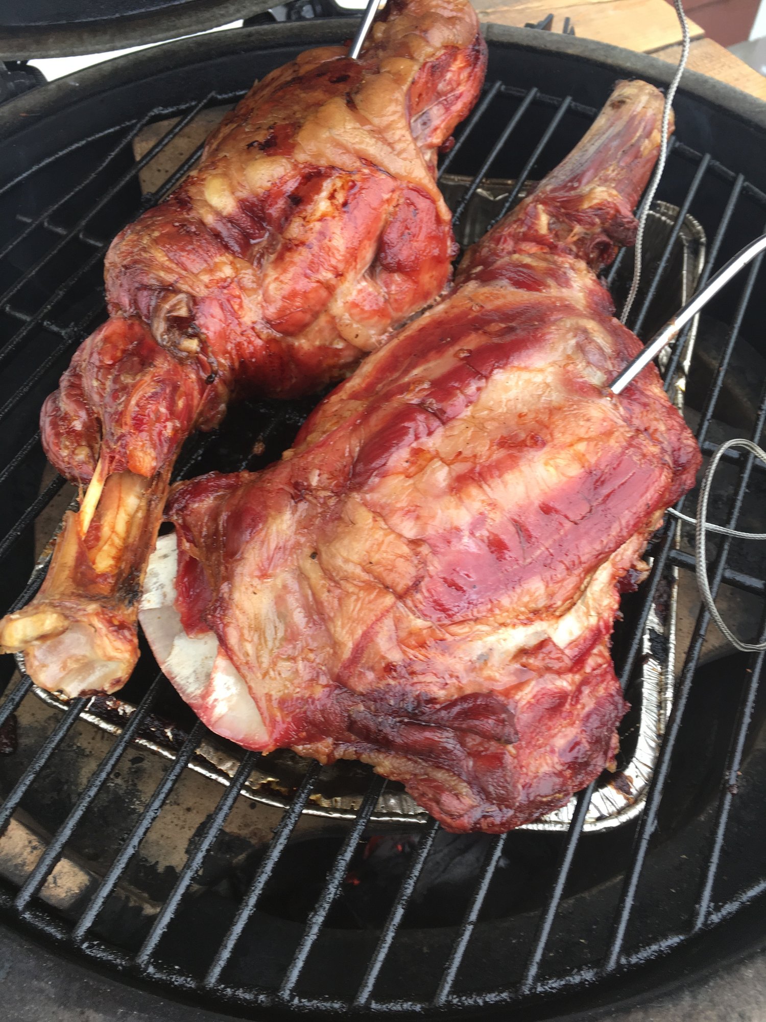 Taste is great. Has a stronger flavor then farm raised pork but not gamey, like a venison or lamb roast. It was just shy of being pulled so I put it in a pan with some apple juice and brown sugar , covered with foil and back on the egg. Let's see if that gets it to shred.