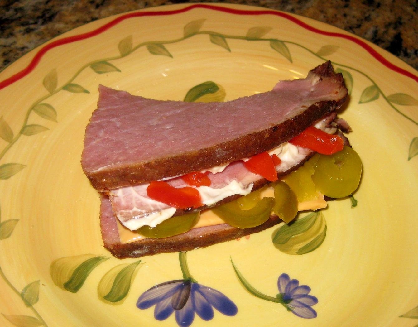 I did that with some ham a little while back. Ham, cheese, jalapeno, ham, roasted red peppers, mayo and more ham. Triple down.Focker said: