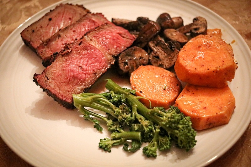 Reverse seared ribeye, sweet potatoes, mushrooms, birthday cake and an all-clear (lots of pics)