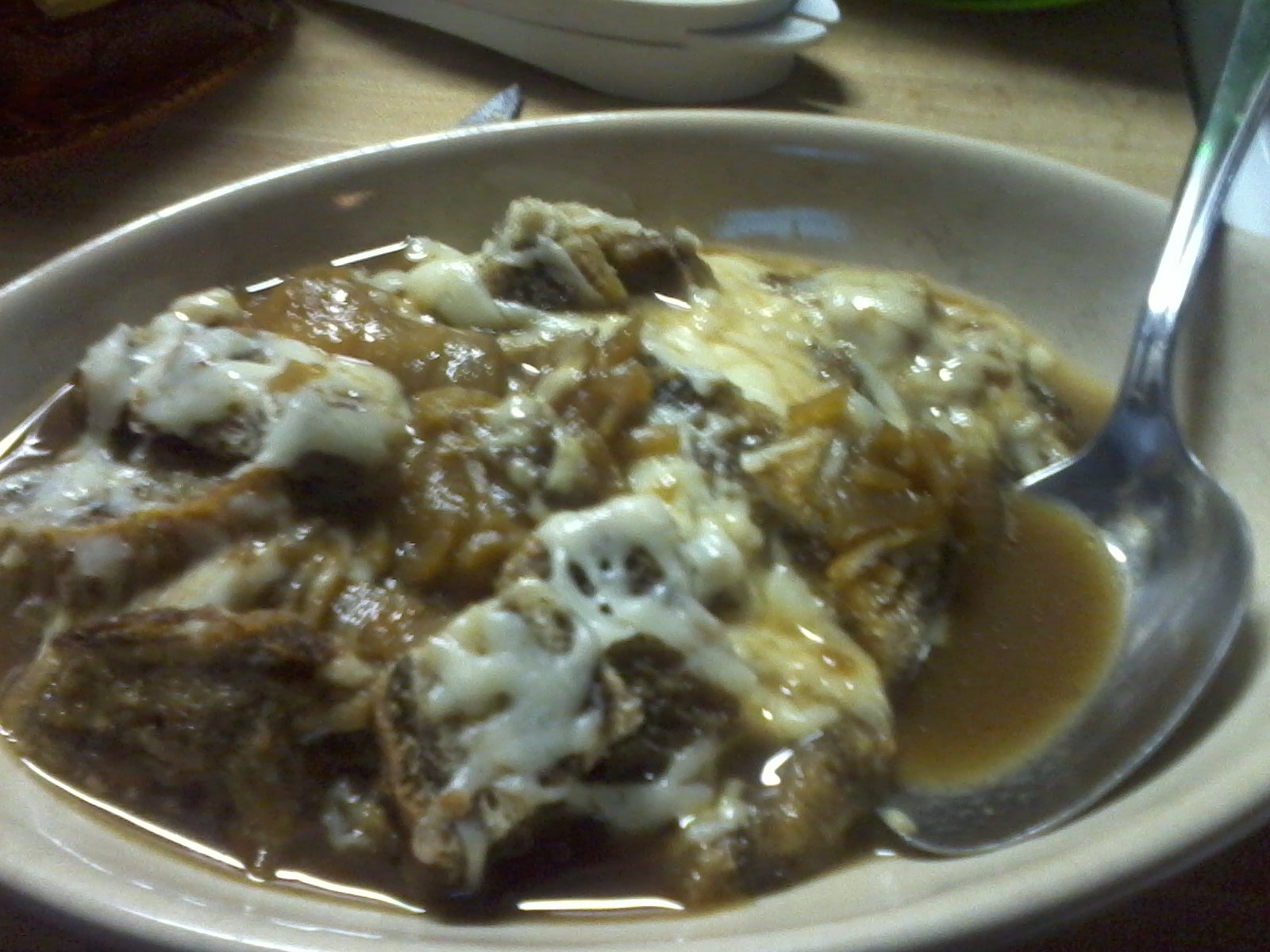 this was stupid simple, 3 onions thick sliced carmelized with a little butter. 1 quart no salt beef broth, 1 packet lipton onion dip mix, simmer a couple hours adding water as needed. ladle into oven safe bowl, add a little cheese, some stale pumpernickel rye, i lightly toasted it and left it on the counter while the soup was simmering, more cheddar and bake. its better than most recipes ive tried with sherry etc. makes a nice dip for the sandwich as wellWeberWho said:That soup looks awesome! Today is my third day of leftover Pastrami. I'm not complaining any...