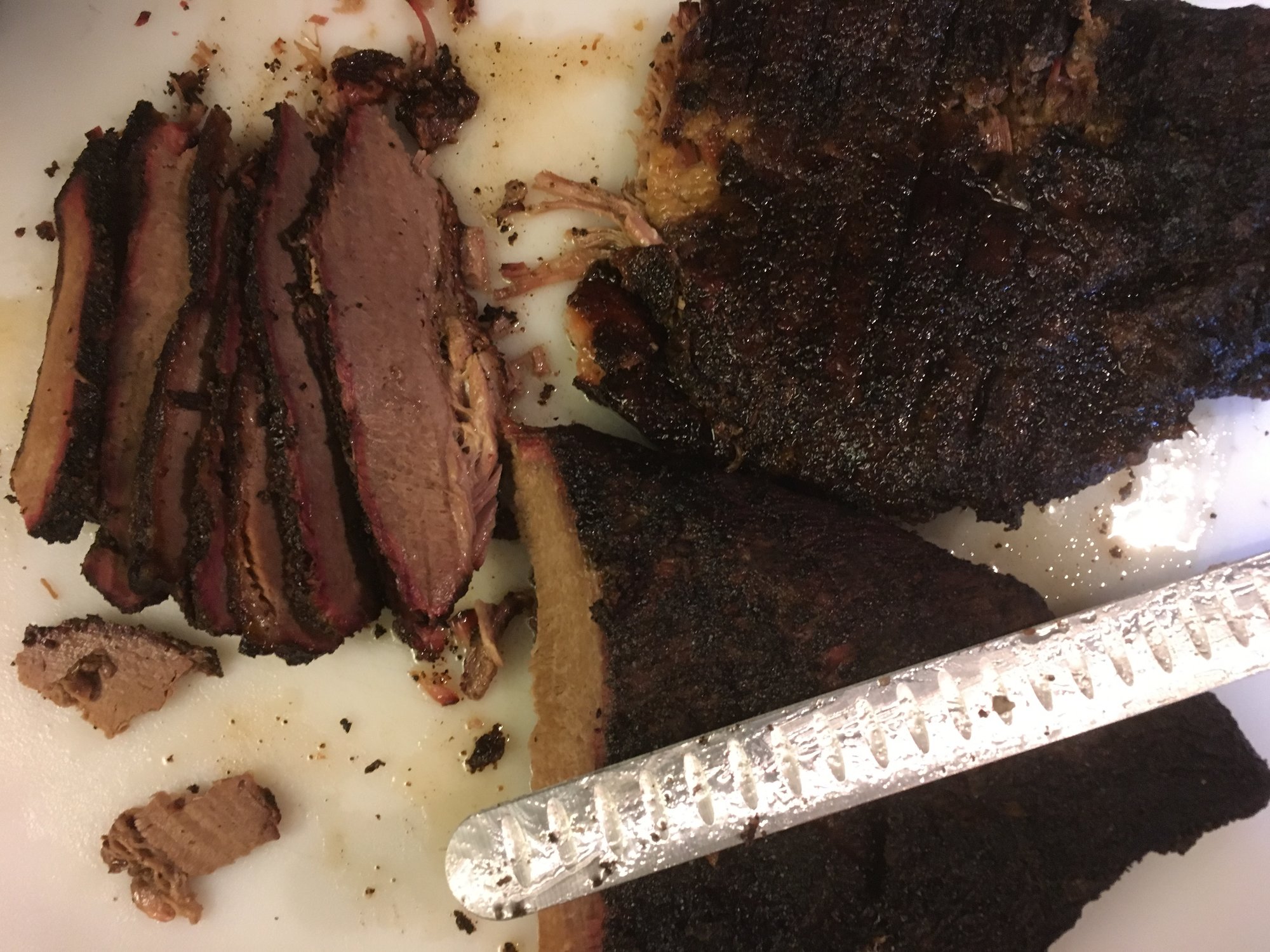 You totally burned it, it is black on the outside.  I like my brisket medium rare.  I can't believe people think this is an acceptable method to cook food.