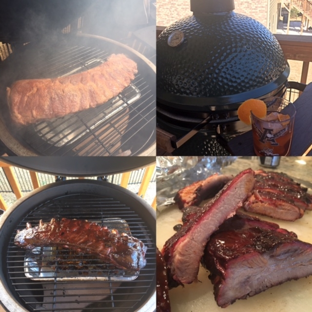 Had to smoke some ribs, ASAP. I did the 3-1-1 method, low & indirect with apple and hickory wood chips. They came out how I like them being tender but not fall-off-the-bone. I like a tiny bit of firmness to them. Just firm enough so a cheap pair of dentures could get the meat off. My father-in-law is a bama fan.