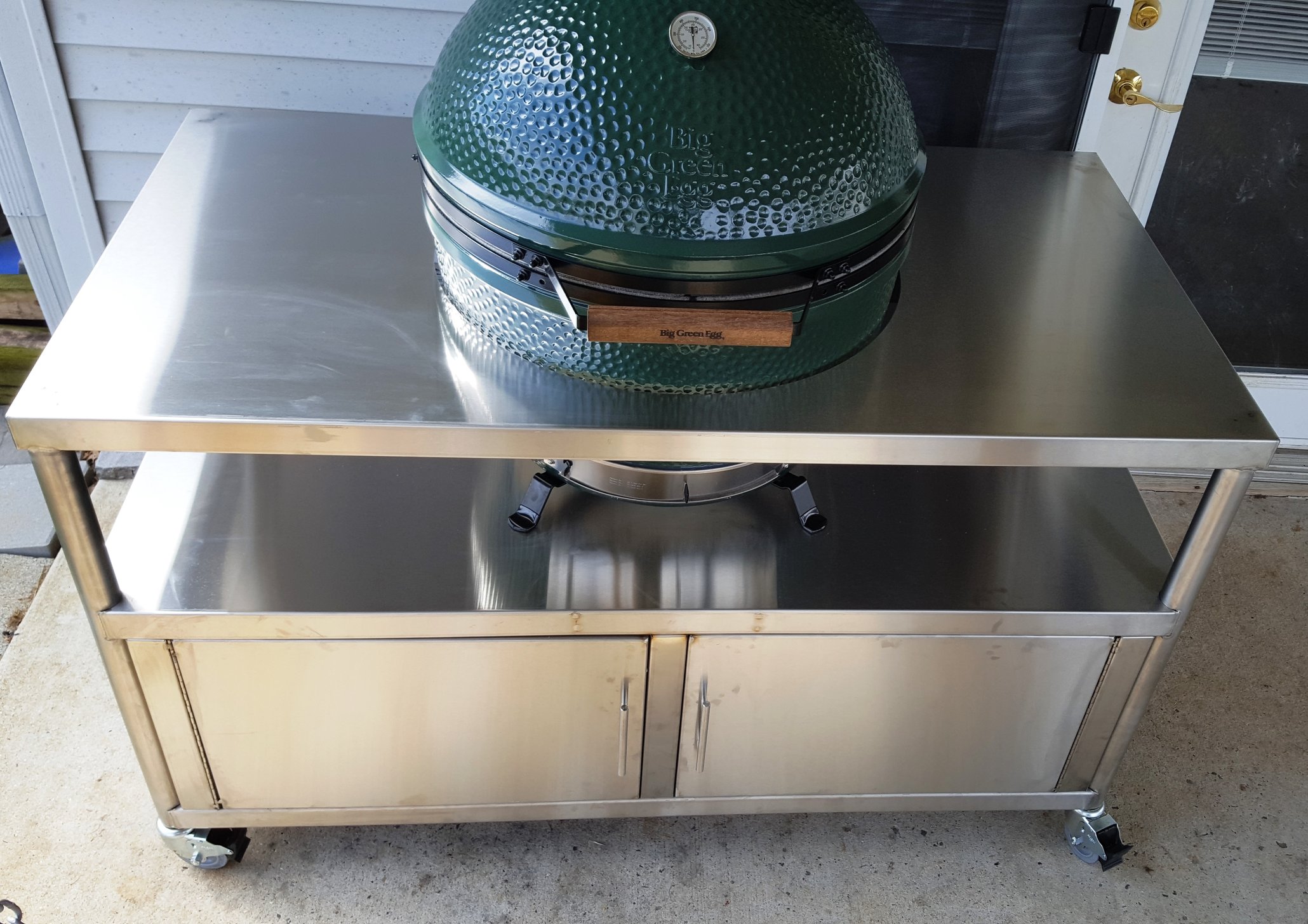 Thanks guys!!! I wasn't messing around this time, I was getting everything I wanted and needed from the start. I bought quite a few things for my large the first time around until I figured out what worked best for me. I had a beautiful Cedar table that I built for the large and with it being up roof, the weather was still hard on it. I knew that I was only going with stainless steel this time. I picked up a platesetter with my large, but never used it once after getting the AR, so I skipped it this time, etc...