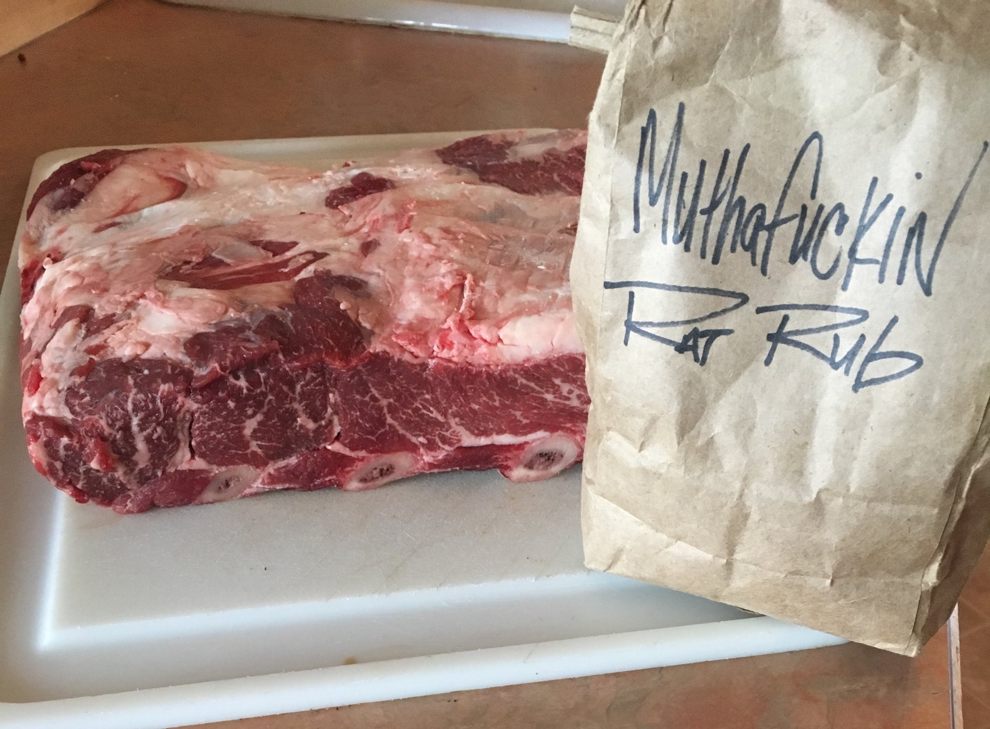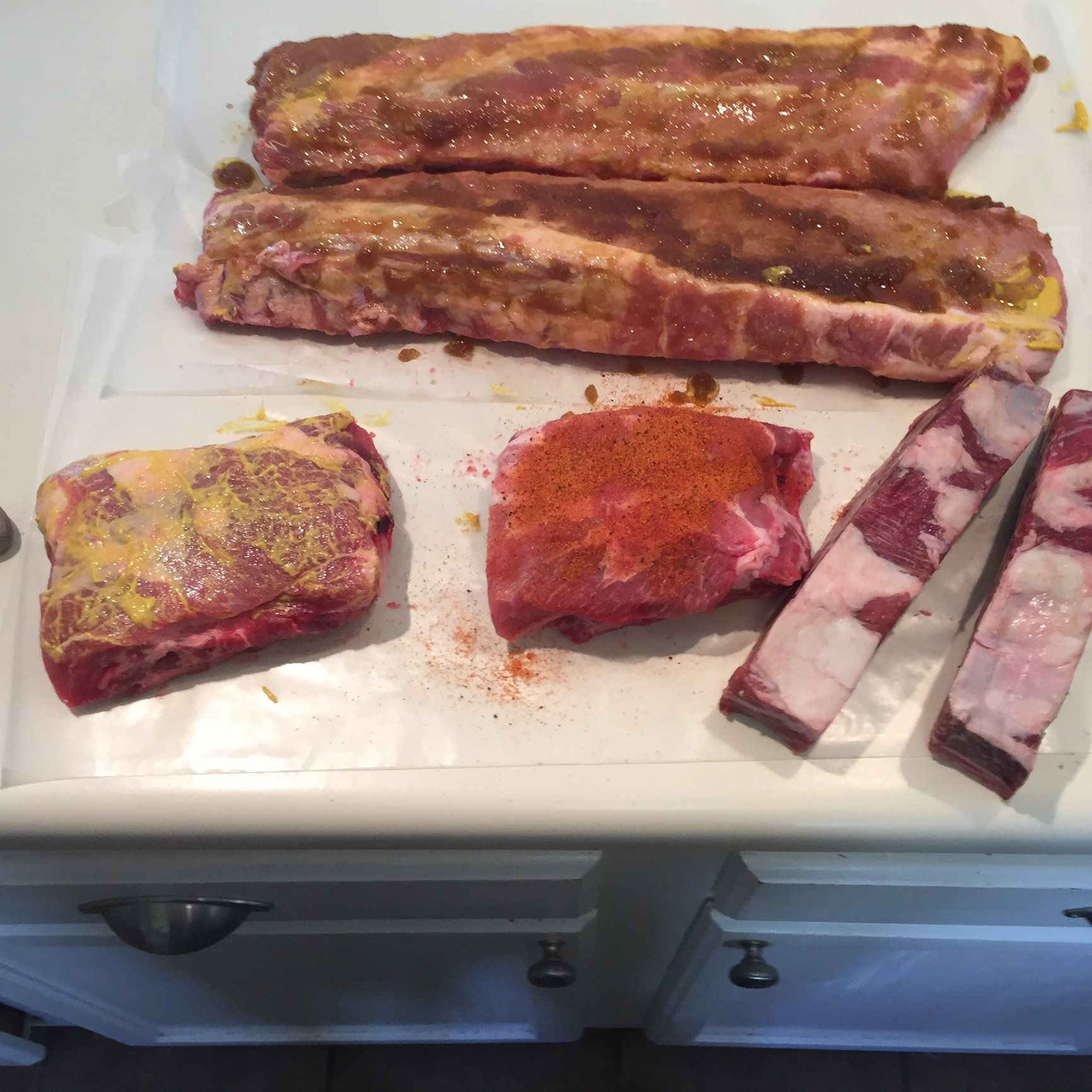 Rack of beef ribs about to go on the large.