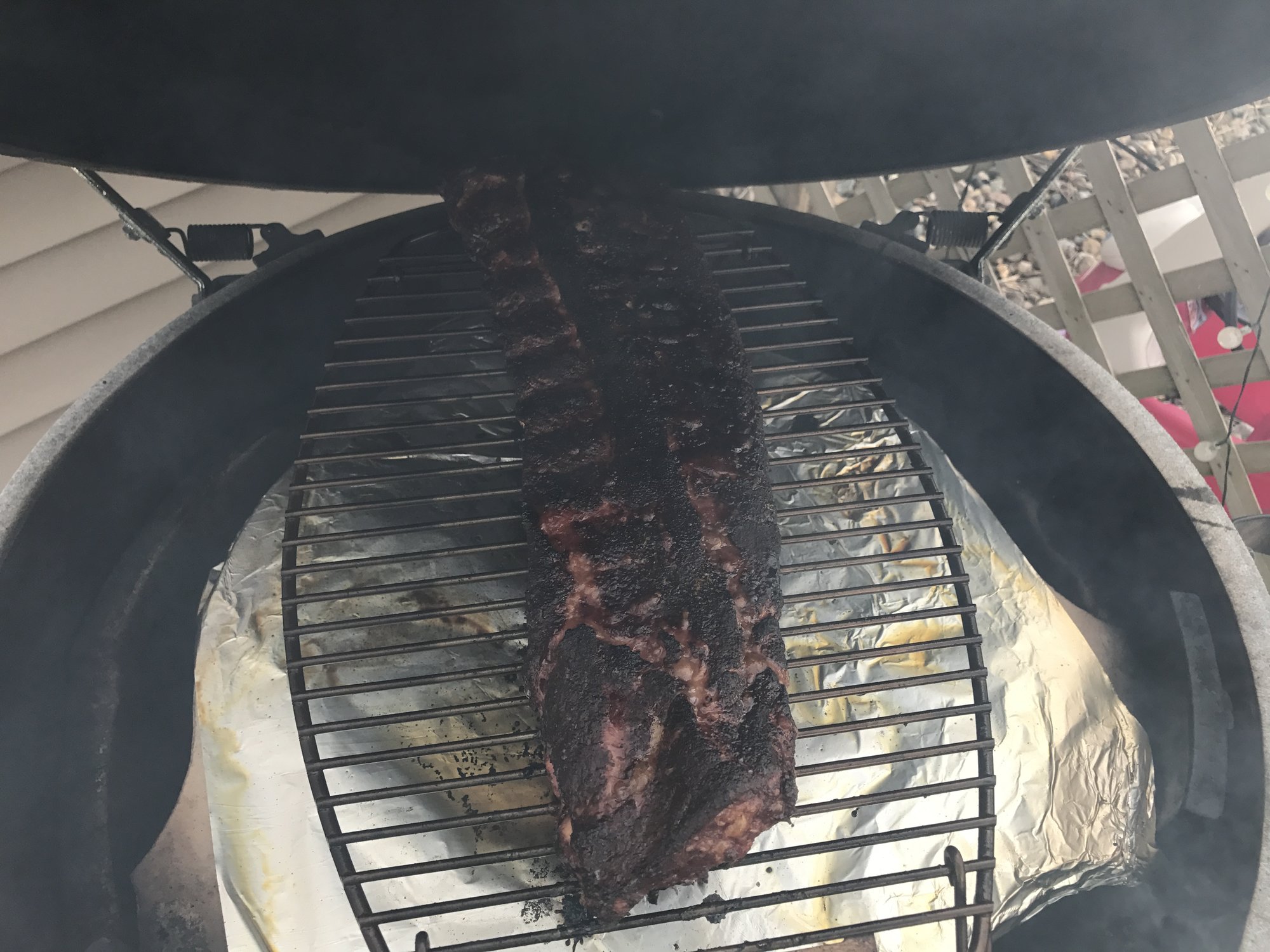 Just a little brisket. Went on last night at midnight. Had to drape it over a brick to fit my large.