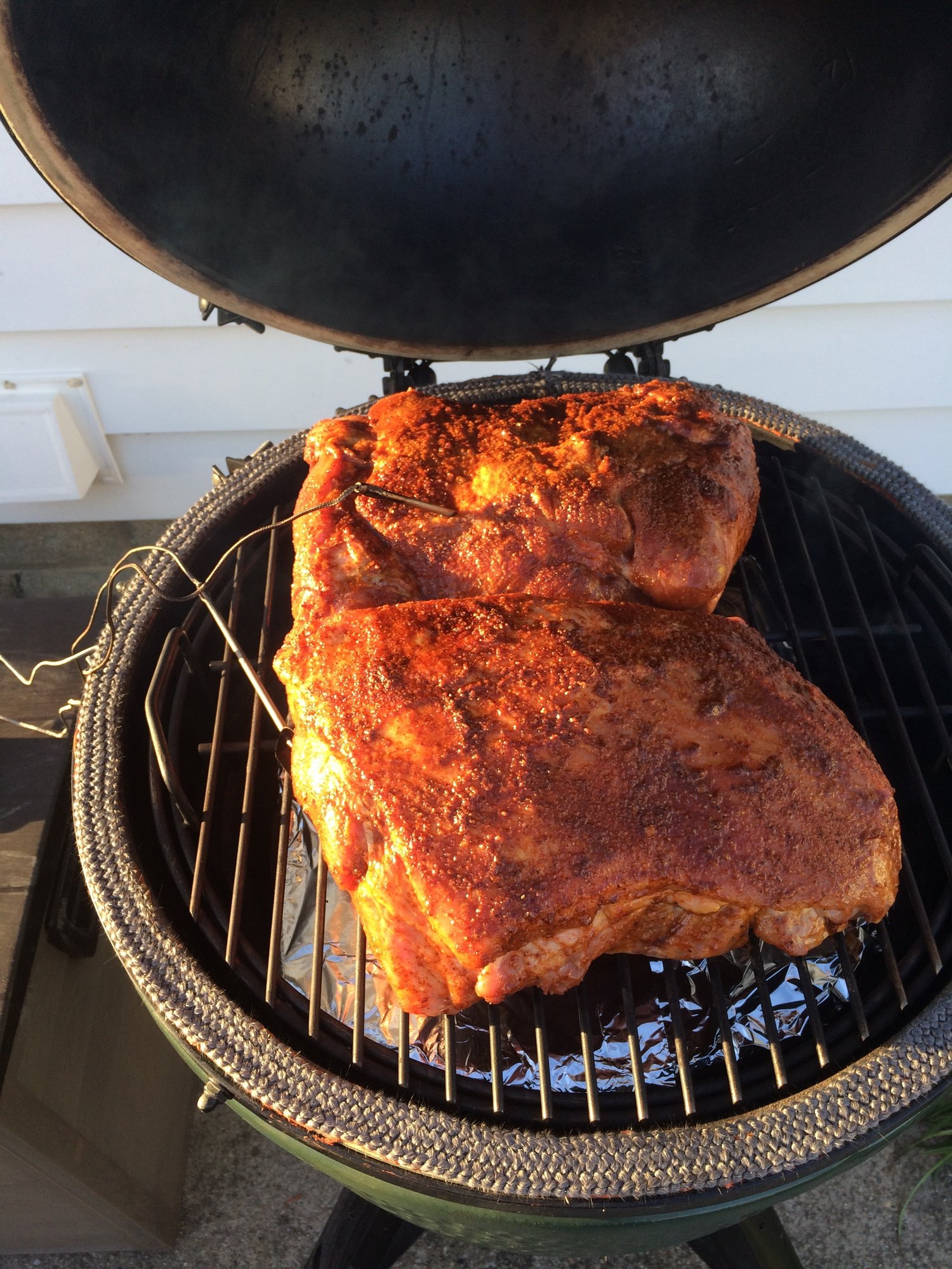 Whats everybody cookin today? I have a pork butt going on the raised indirect thanks to The Ceramic Grill Store!