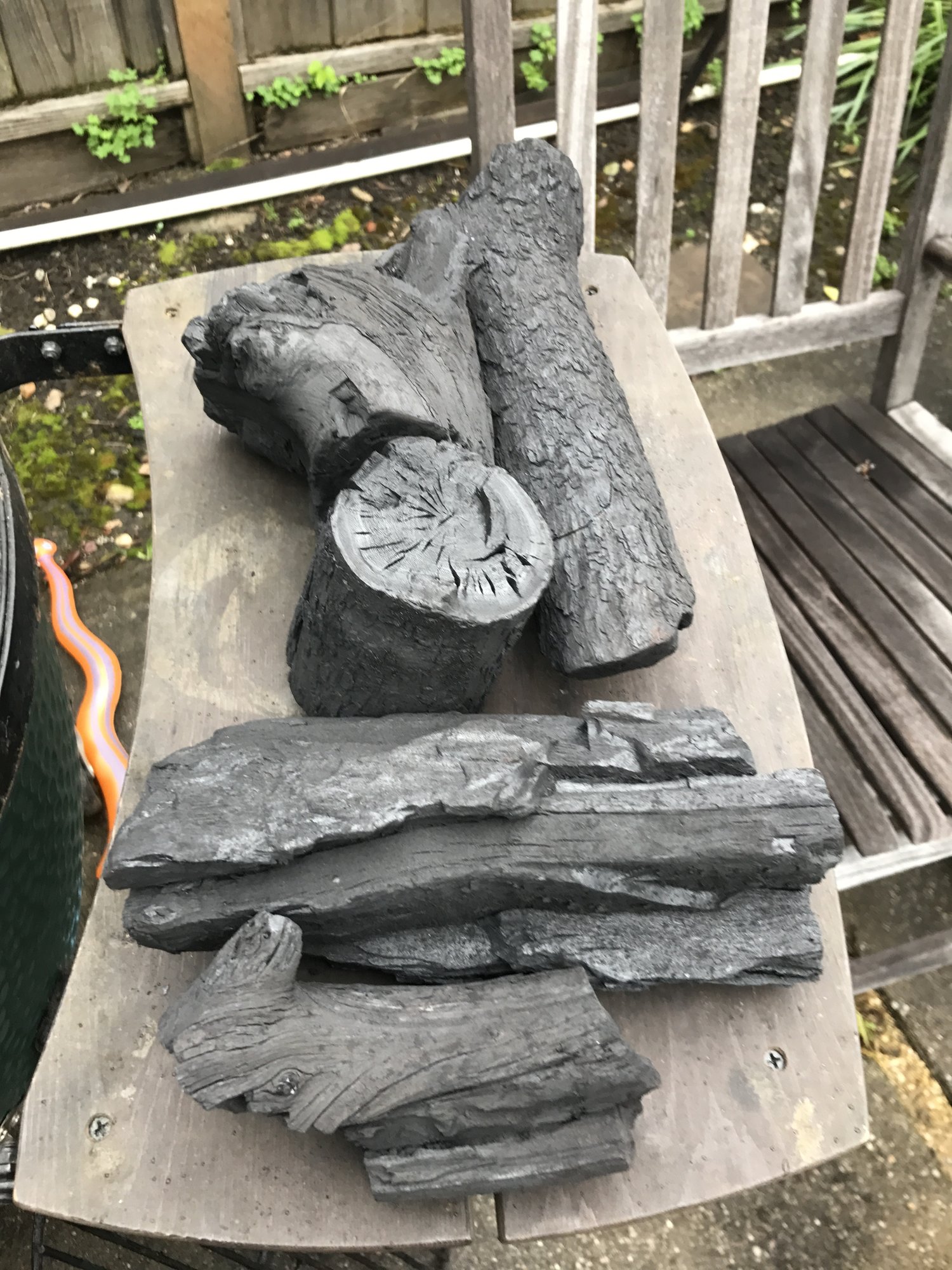 Here in northern CA lump choices are slim, either Royal Oak or Royal Oak.  I was surprise to find this Senora Lump at a Smart & Final near my house.  40#s for $16.  These are logs!  Way bigger and denser than RO!  Gonna try these mesquite logs on some ribs.
