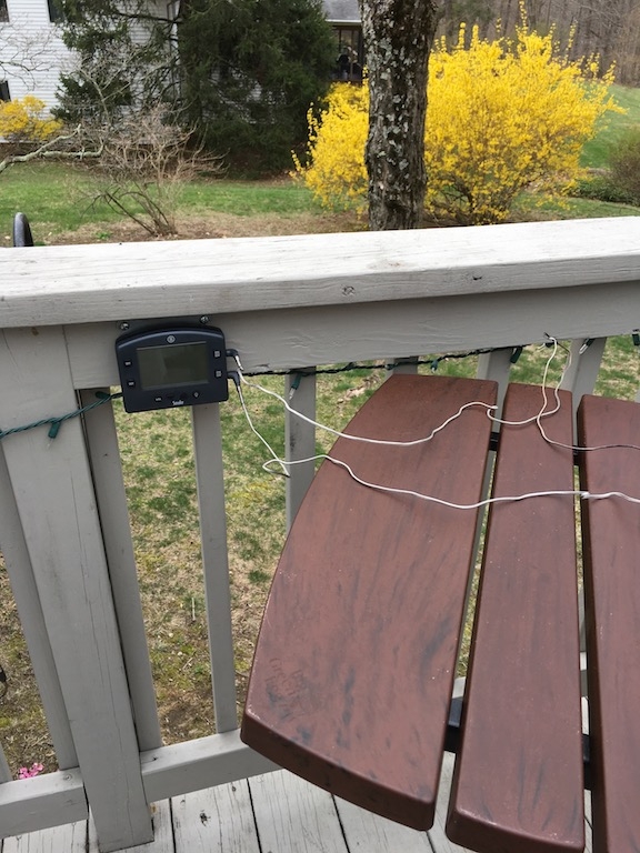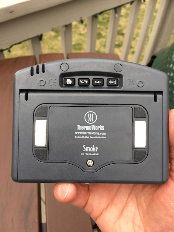 Ok. Got tired of having the Smoke display unit sliding around on it's little stand when I insert, move or remove the food. Noticed the magnets on the back of the display unit so I mounted a junction box plate to the deck railing within reach of the Egg and problem solved. See pics.