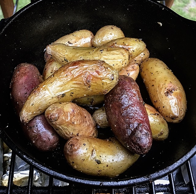 Anywho, here are the food pix. Originally wanted to place the roast over the potatoes, but it didn't fit on the top of the AR (and I didn't feel like swapping out the grate). 250 deg f indirect for a coupla hours until it hit an IT of 125.