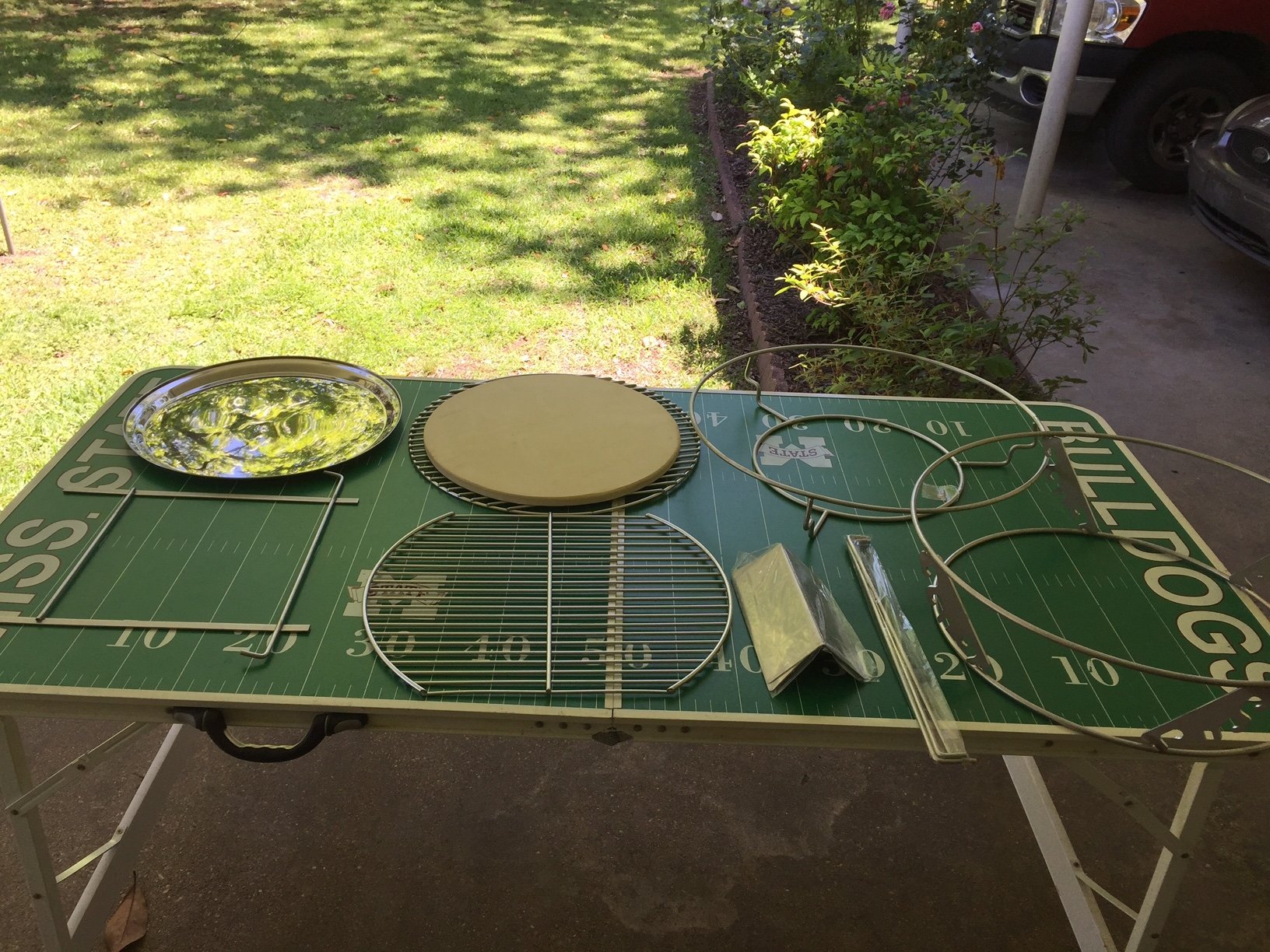 Thanks for the helpful replies to my earlier questions, and thanks for replies to questions I didn't ask, but found before asking. This forum is a great resource. The BGE was assembled late yesterday (Fri), first cook will be tonight: chicken legs.