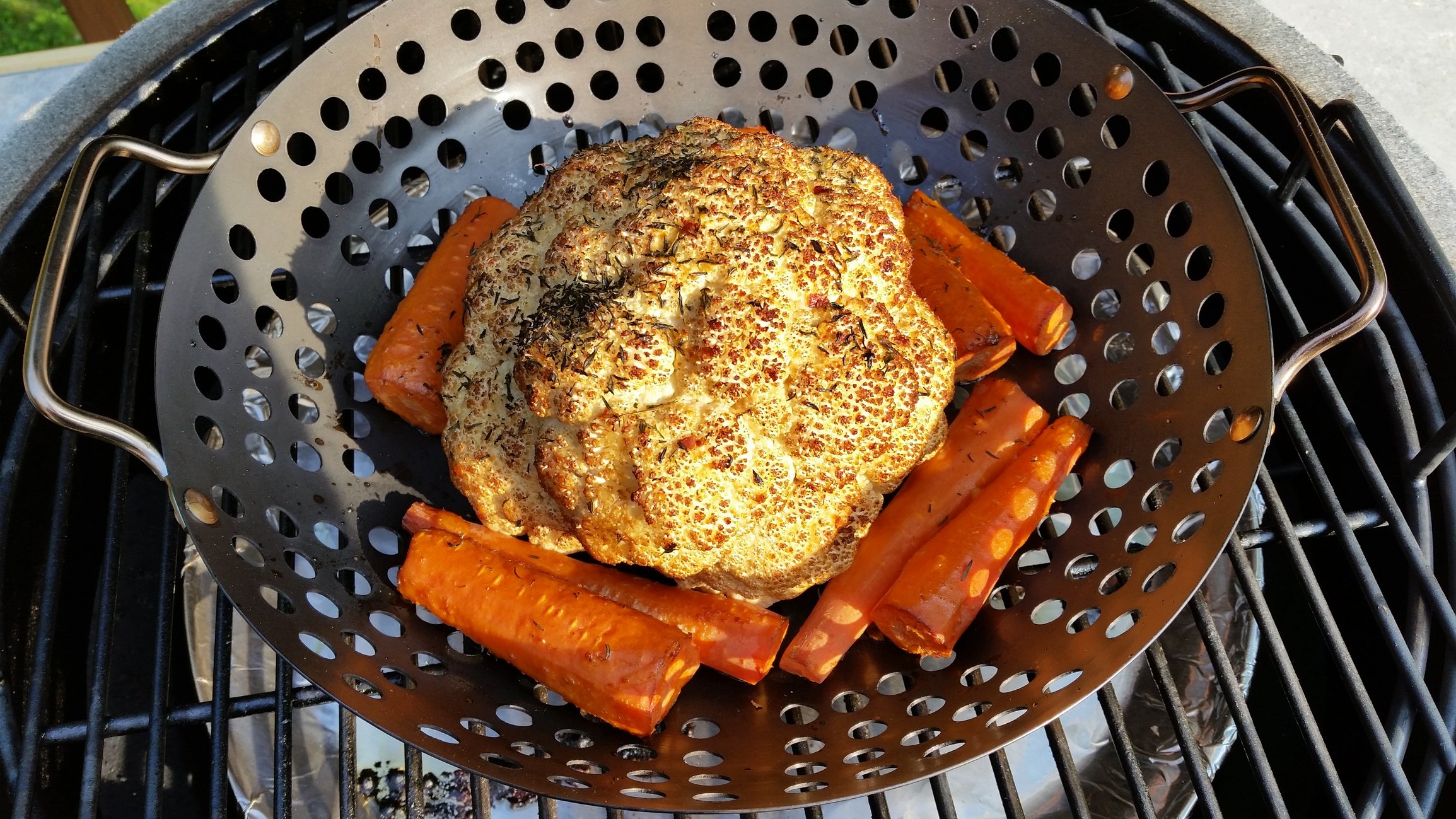 Being a newbie, I keep thinking I need to add smoke to everything. This cauliflower looks good but the smoke was way overpowering. Lesson learned. No wood chunks next time.