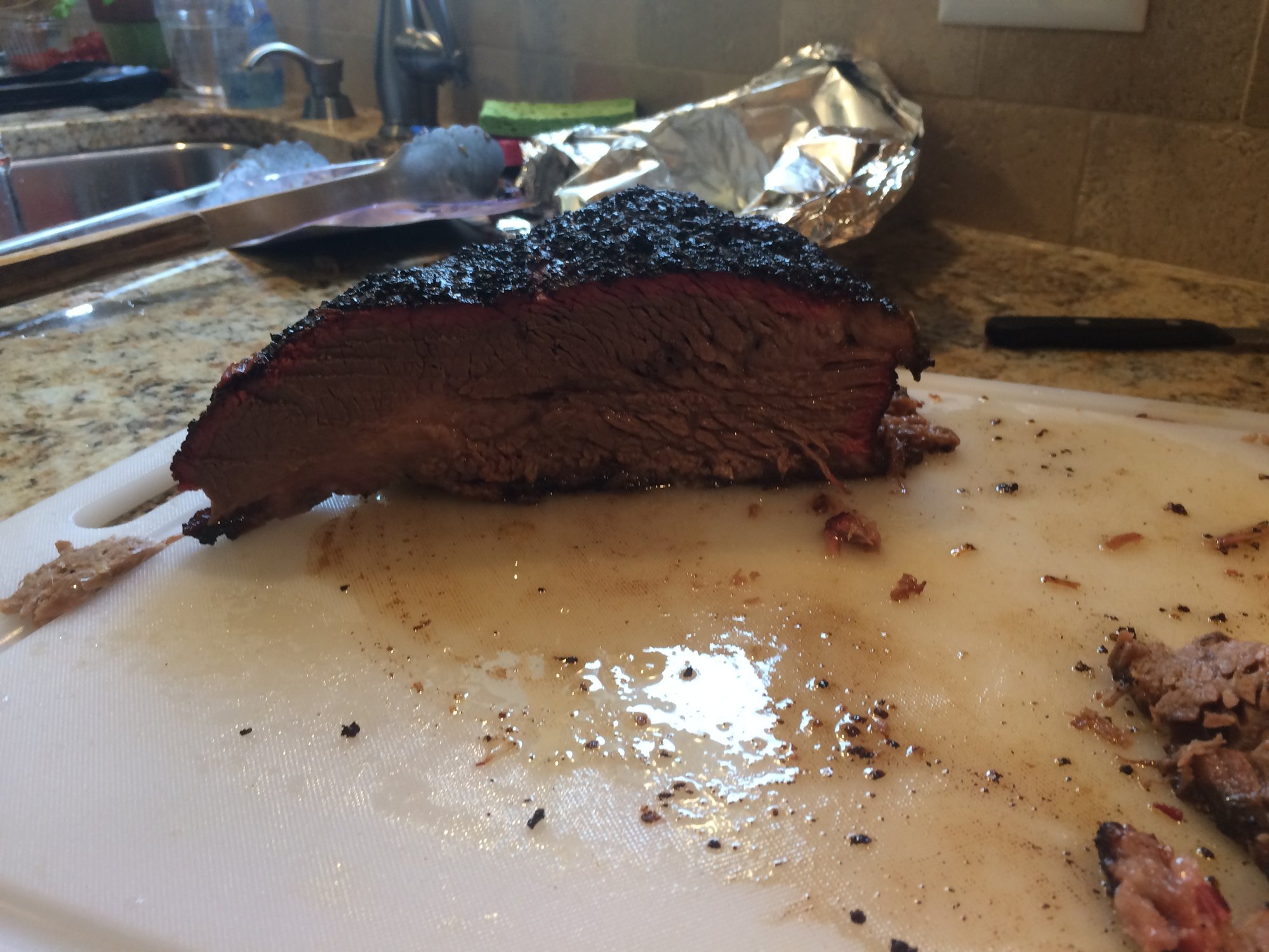 Great smoke ring, and tenderness. I think a prime would be a little juicier due to more fat, but I was pleased with this one as I didn't have to wrap it, and it didn't dry out during a stall. The espresso was subtle, but I liked it.
