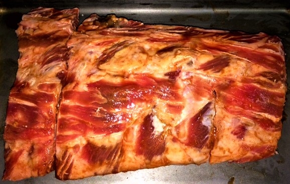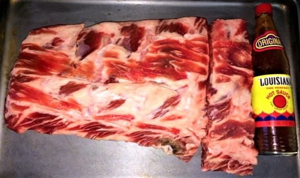Friday night, used Hot Sauce as binder for the rub on these Beef Back Ribs . . .