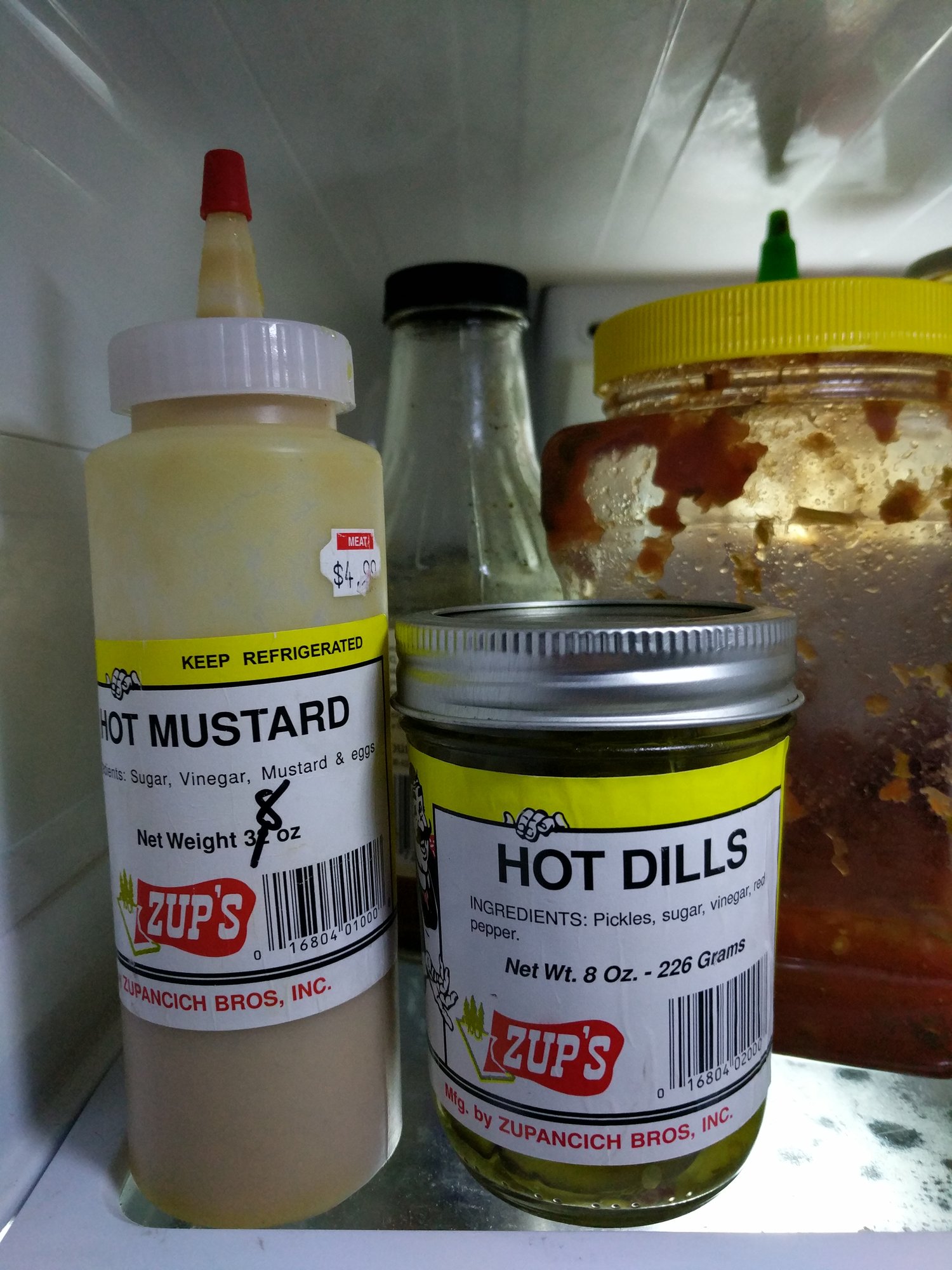 Zups Hot Dills. Find them in northern Minnesota. Their hot mustard is also excellent.