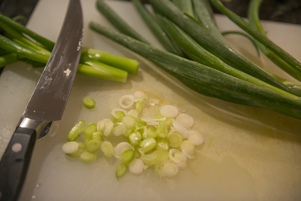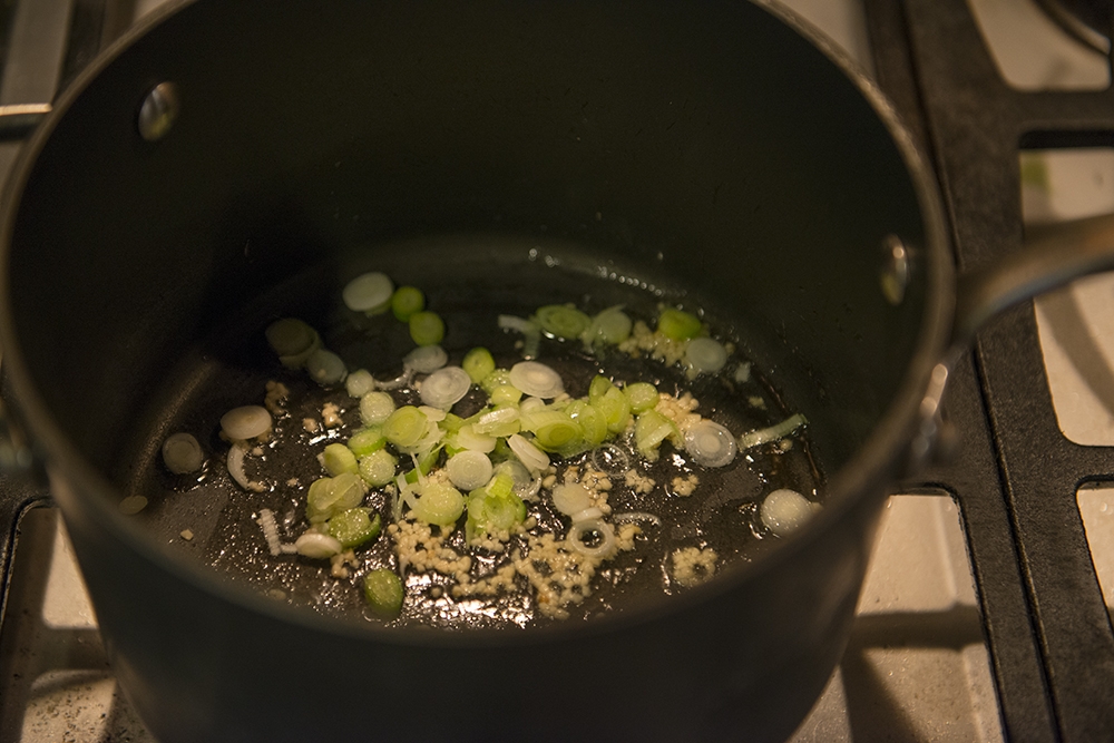 Scallions chopped and combined with Olive Oil and sautéed for 10 minutes