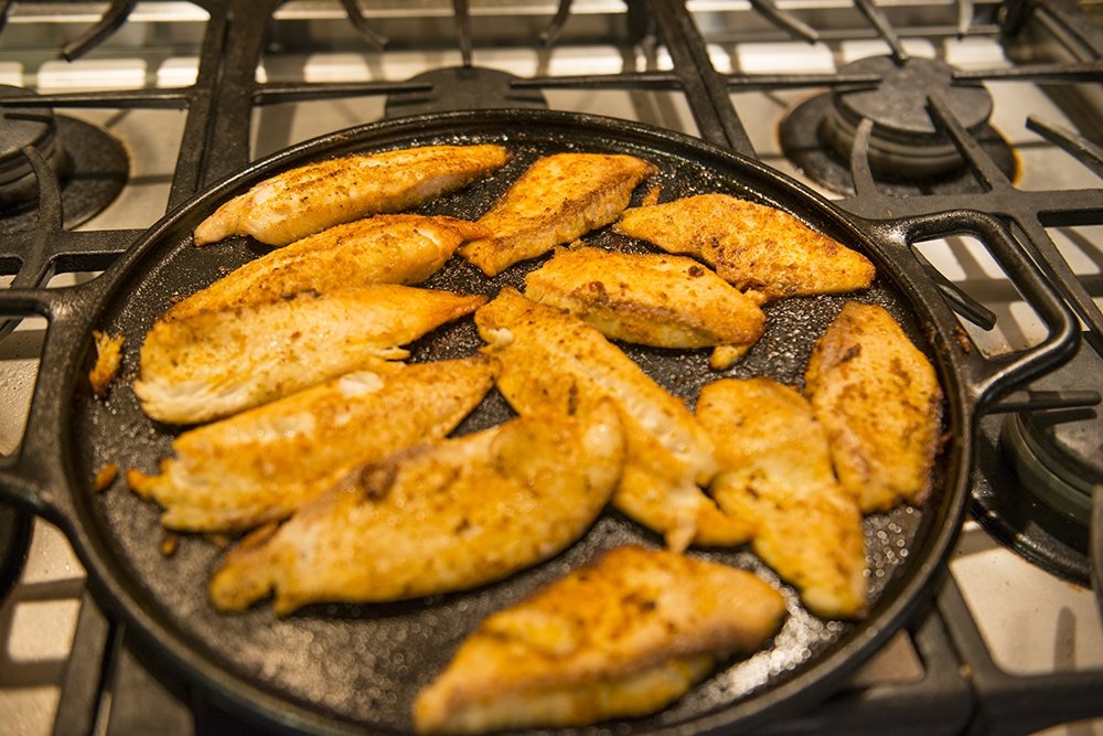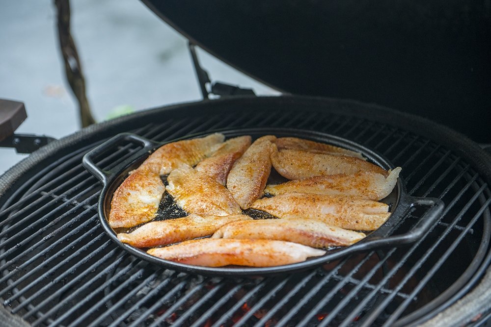 Grill on Egg (400 Degrees) on Cast Iron Pan until done
