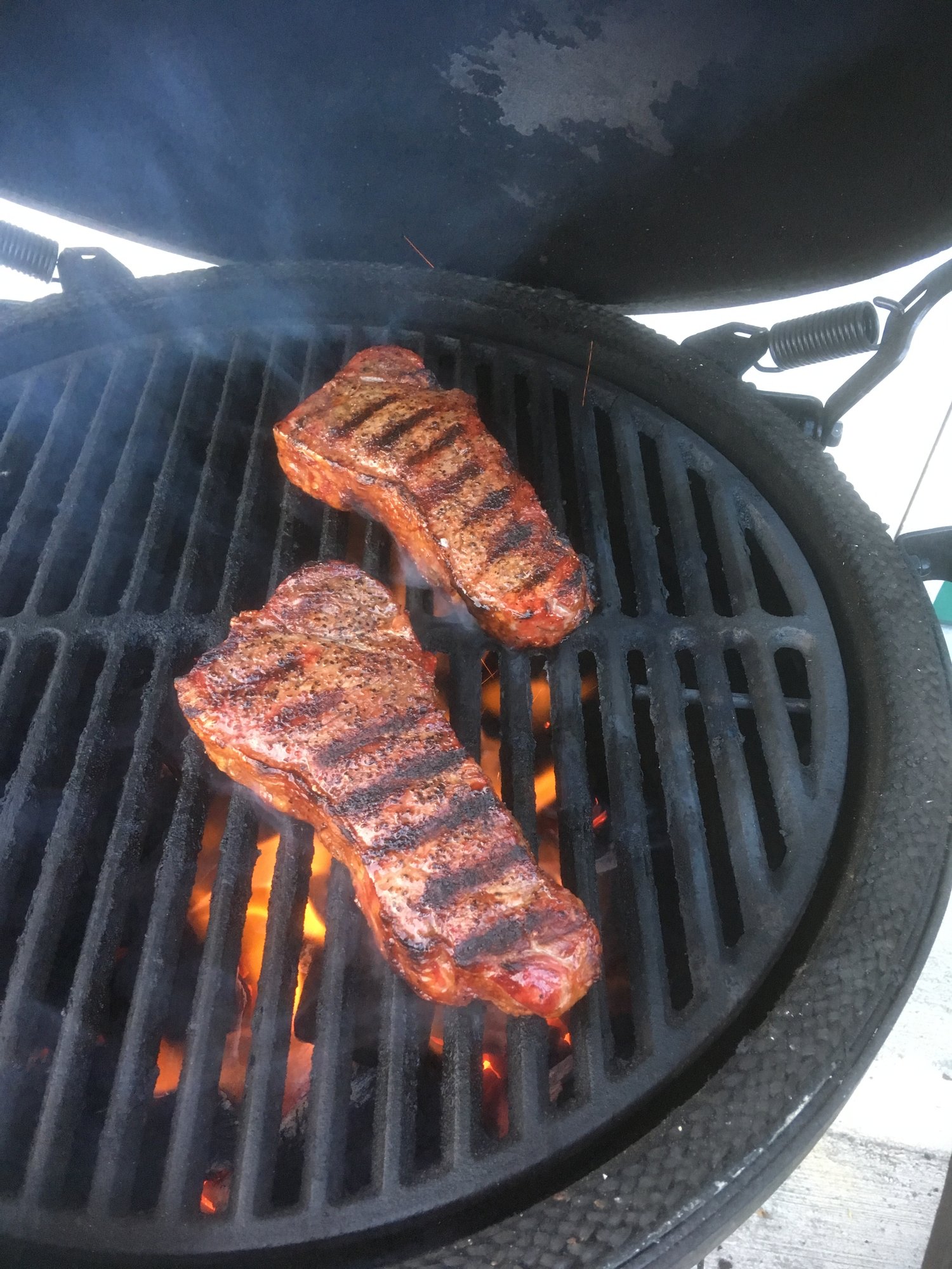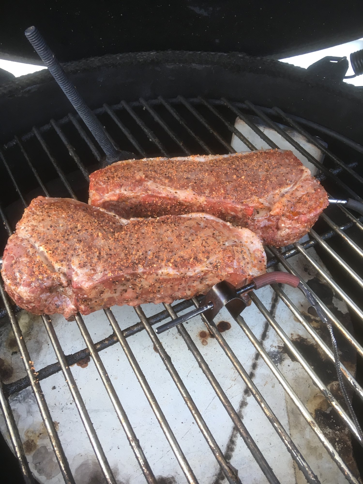 I bought the grid raiser from smoke ware.com for raised direct. For thick cuts like that I always reverse sear it just gives me better control, although next time I'll pull 5 degrees earlier because I think I had some carry over cooking. The dome temp and grate temp are around 15 degrees different but if I do a long cook they usually equal out. I think I paid around 25 bucks for that grid raiser