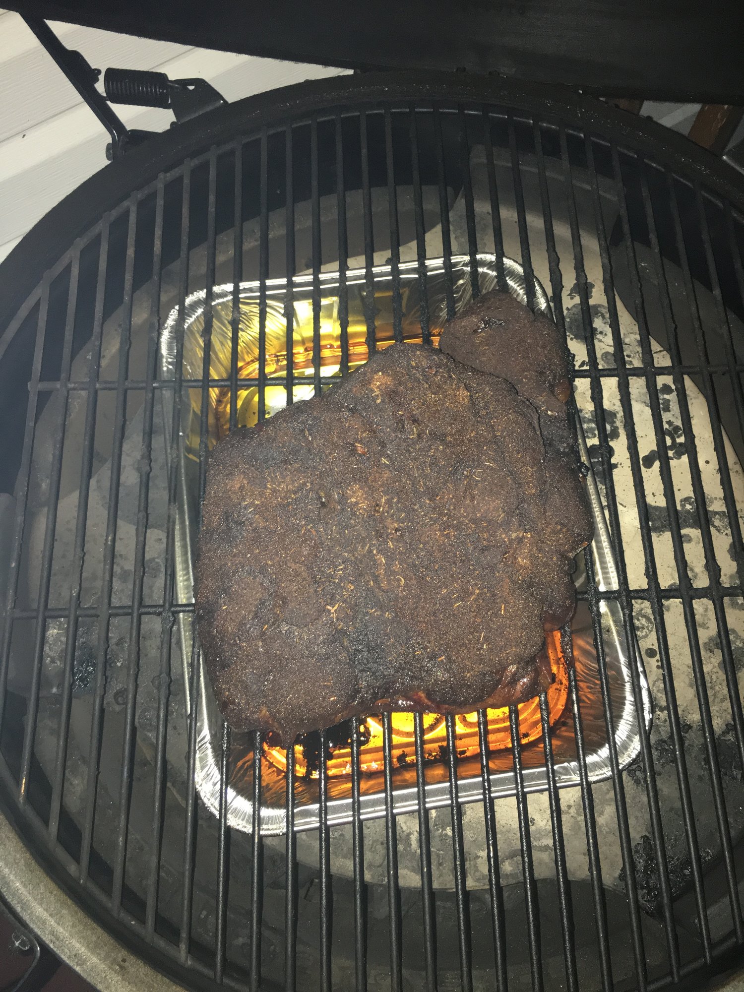 Had a little trouble in the middle of the night keeping the temps right, but 20 hours later and here we are! I could barely get it off the grill without falling apart. The hardest park was wrapping it up and putting it in the cooler before I ate it all!