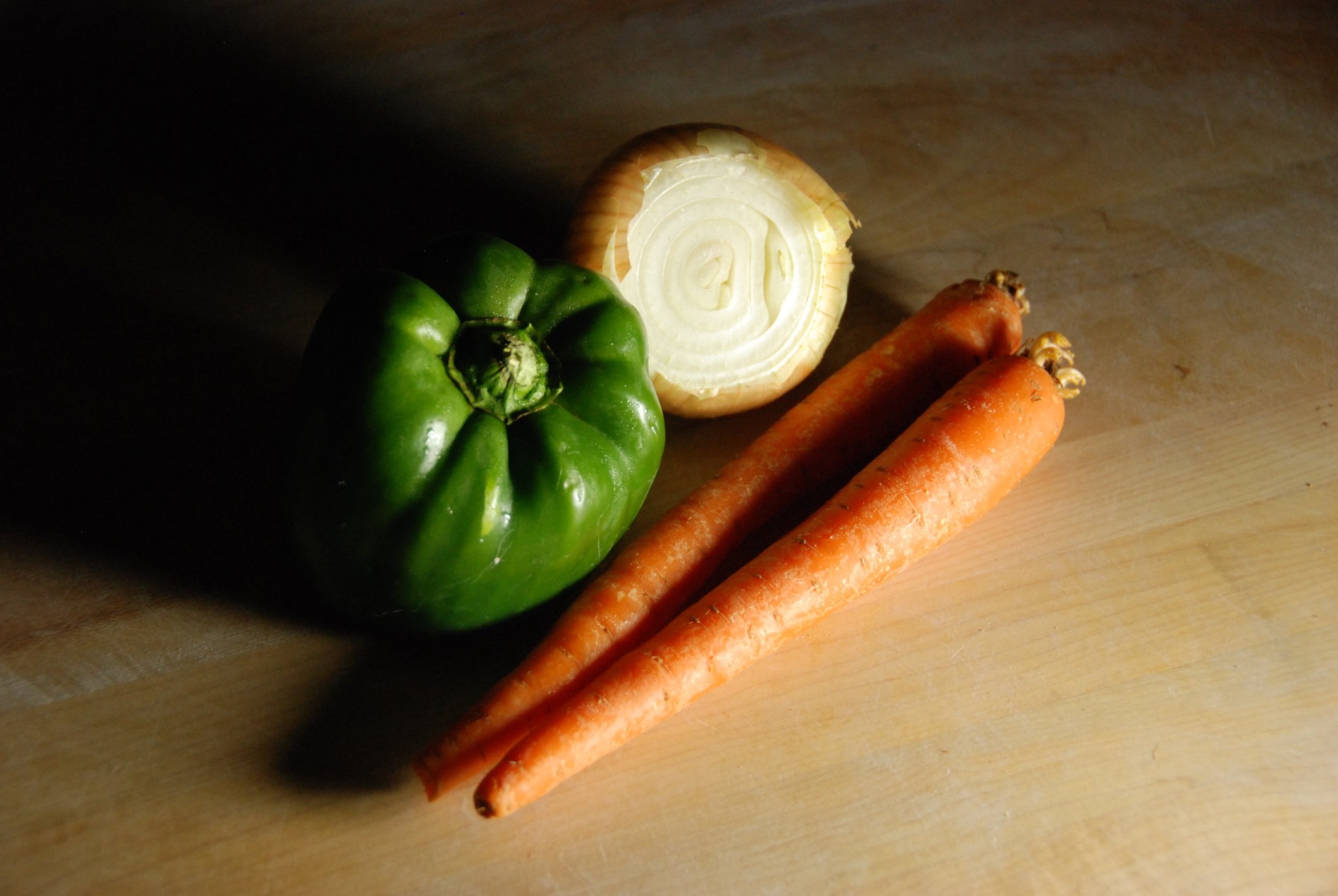Now this pic is not going to get me a cover on Bon Appétit or the late, lamented Gourmet, but it sure is an improvement over my usual. Color is accurate, shadows are interesting and my carrots aren't hairy! =) With a $2 light bulb! I was delighted! I used a Nikon D-80.