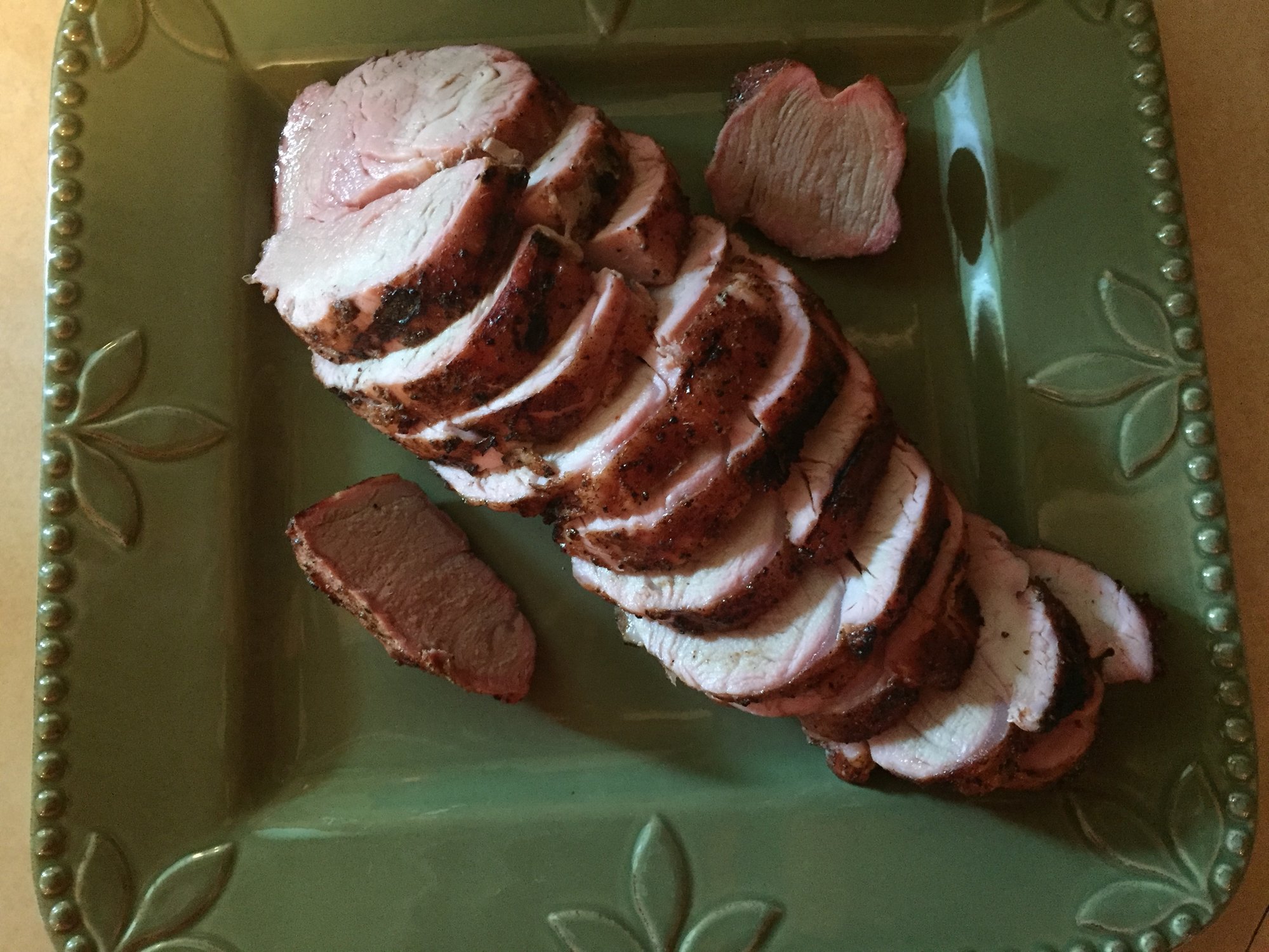 Great looking meal! I have a pork tenderloin in the fridge awaiting its fate with the egg. What temp did you pull yours off the egg? 140?