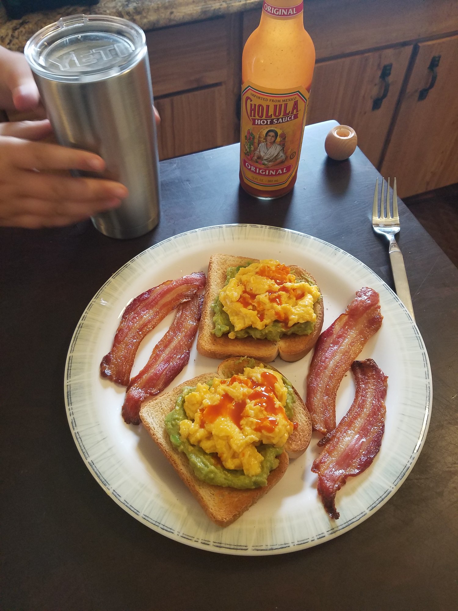 Toast, butter, Marmite and scrambled eggs. Mmmmmm.