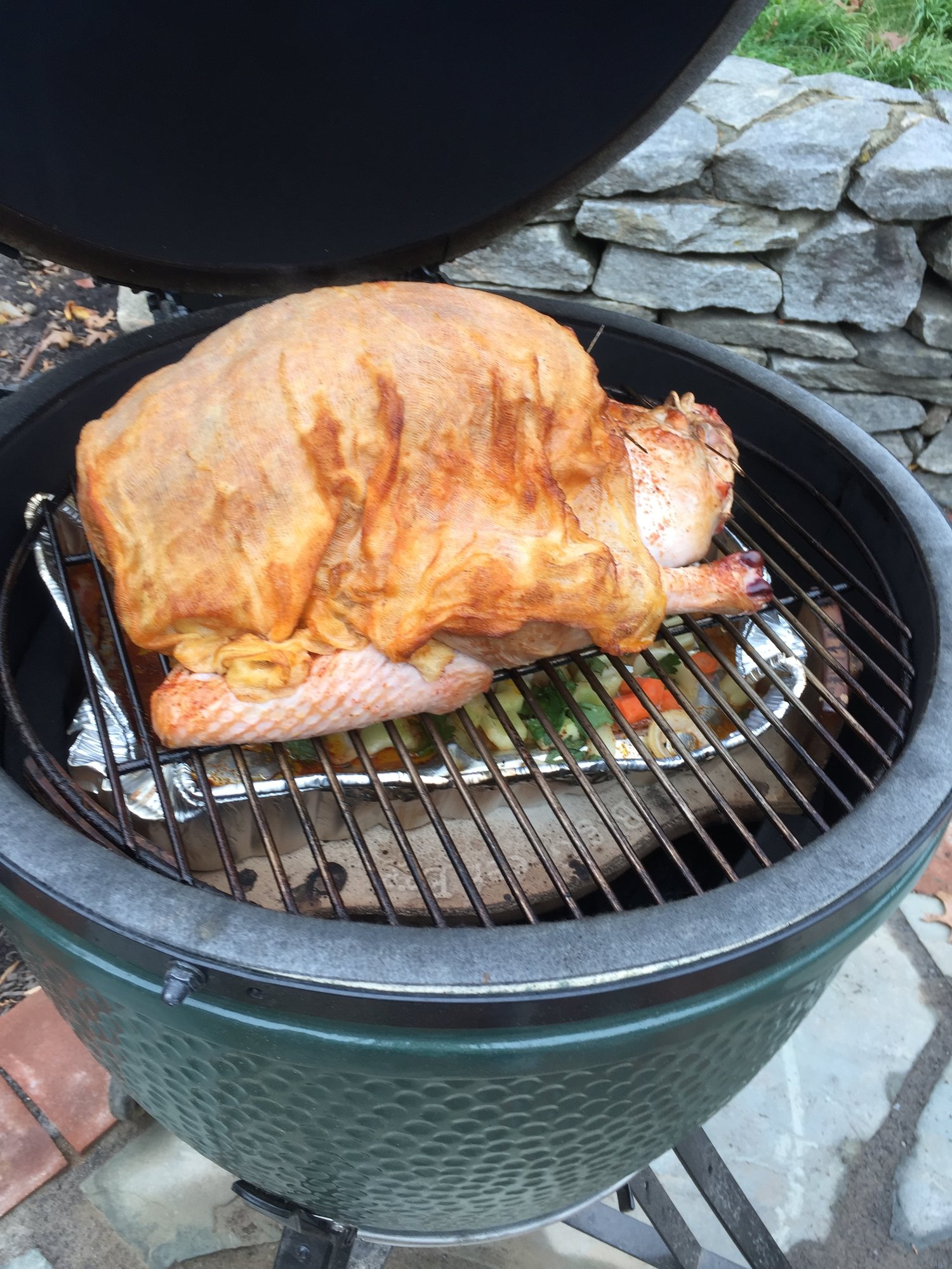 Just found the pictures - did a head-to-head last thanksgiving oven vs egg. Both done per Martha Stewart, both stuffed, neither brined. Family loves the egg turkey - was totally gone down to the bones. Only 1/3 to 1/2 of the oven bird went. Even the stuffing tasted better. Pics posted out of order, but in the middle picture the egg bird is close and oven bird in background.