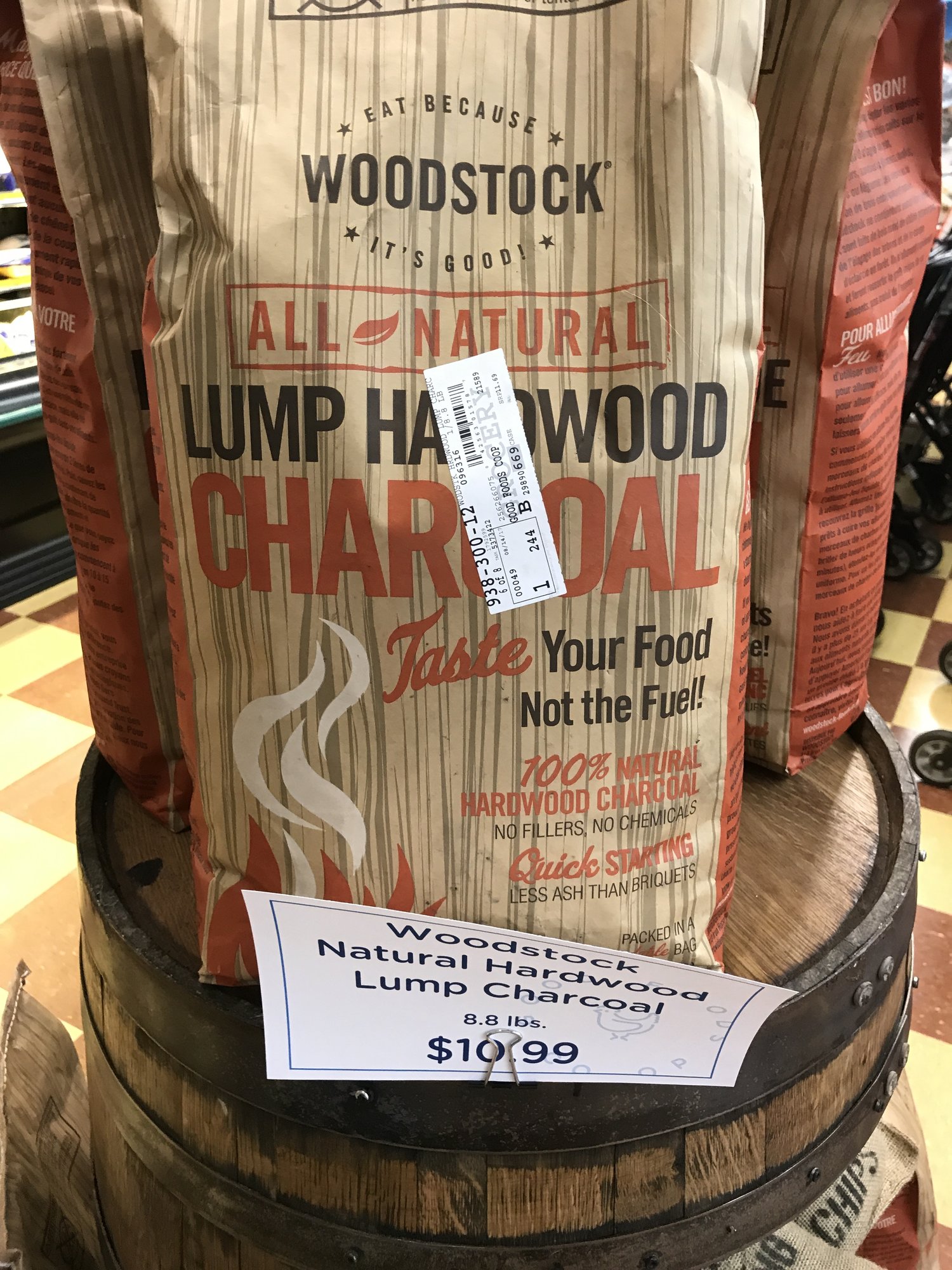 What about Woodstock lump? 8.8 lbs. 10.99. Local food co-op.