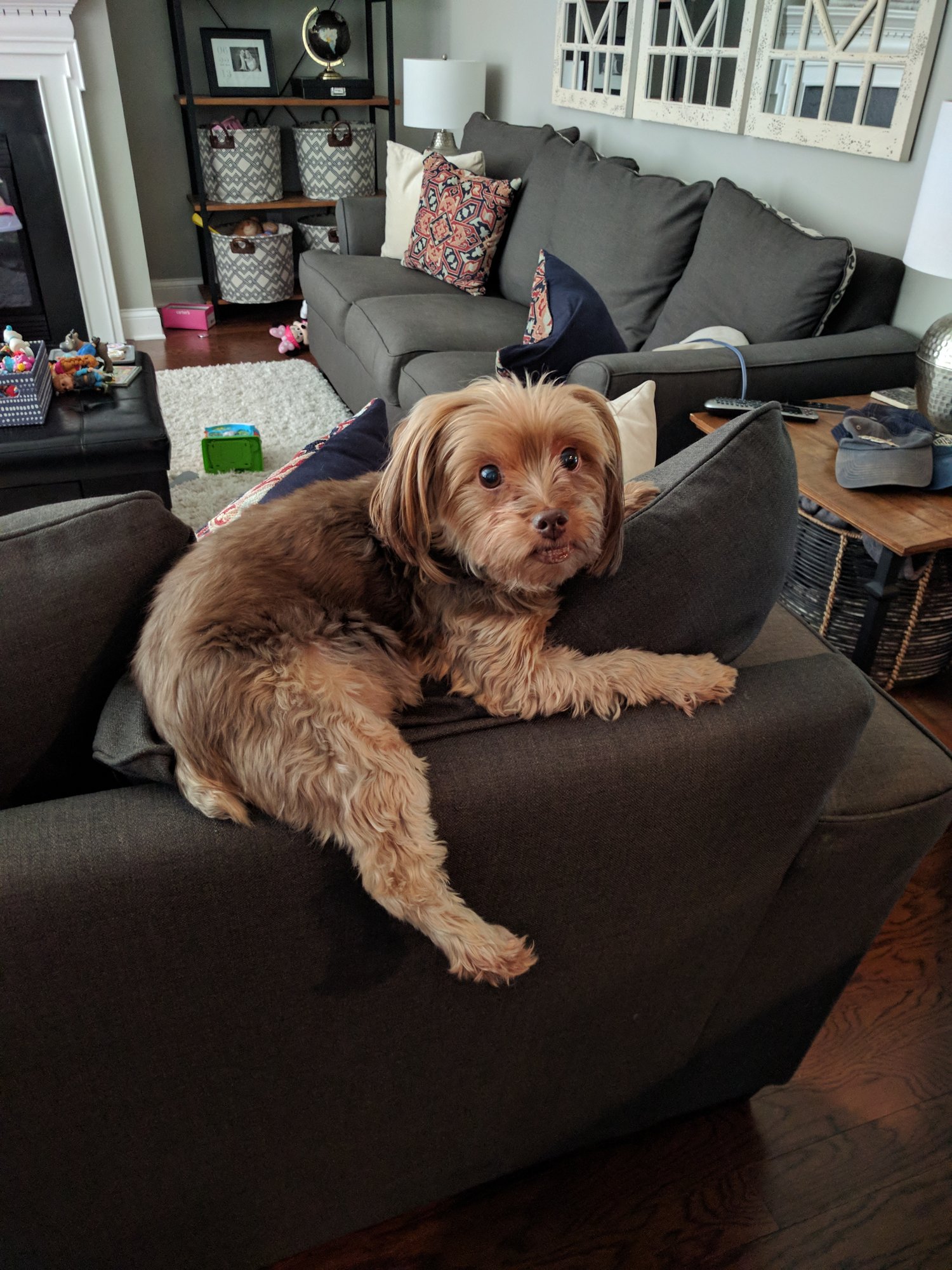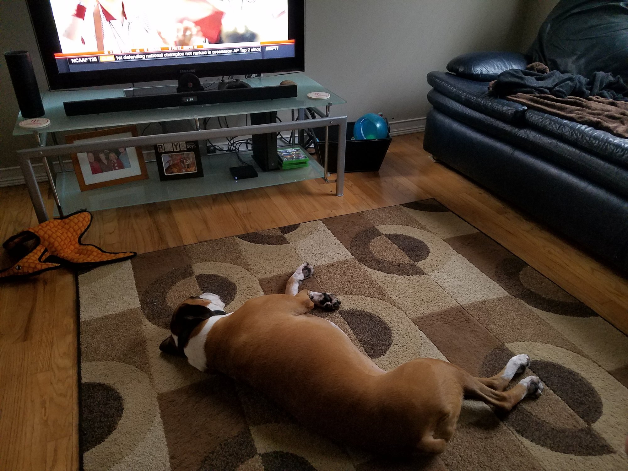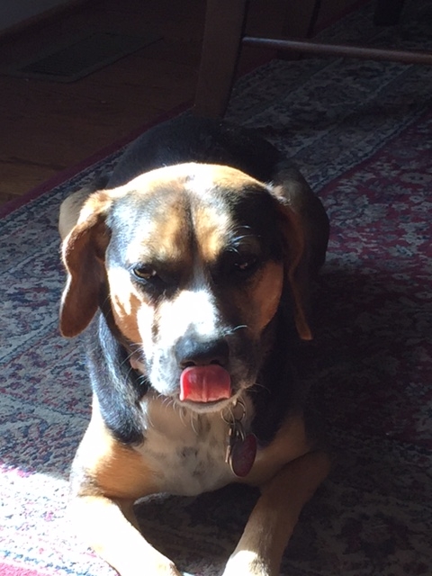 • Just being a bum per usual.  I call her cat-dog.