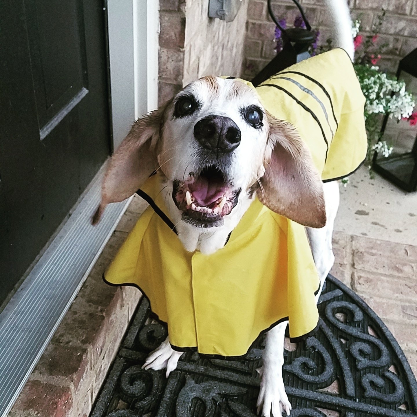 Glad Max's surgery went well! Great yellow raincoat - looks like he's saying, "Do you believe what they did to me?!"