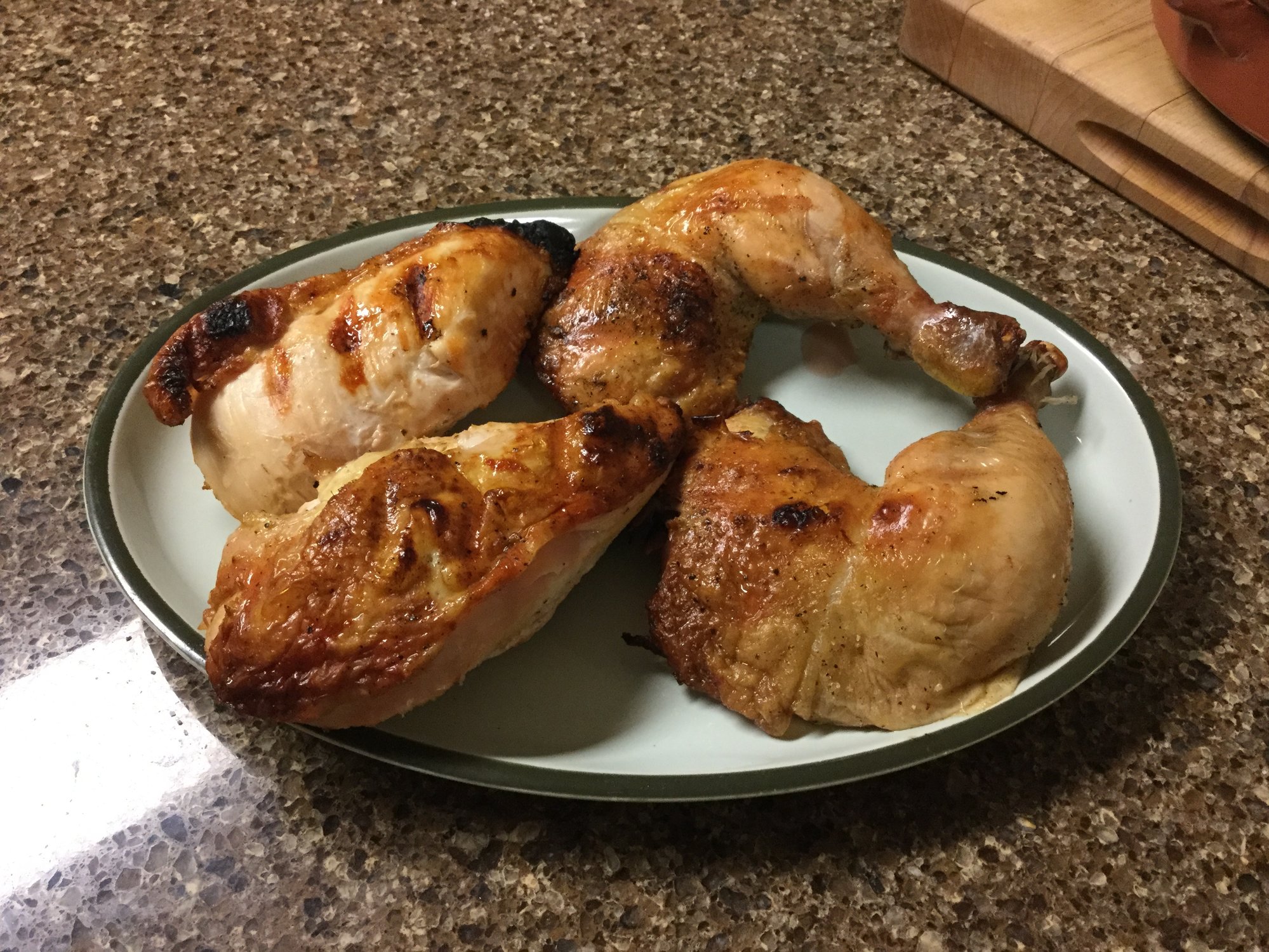 The skin is amazing - crisp and fabulously delicious. That's great - but - I get the same amazing skin on a spatchcock chicken cooked in the wood oven. It's the best I've ever had and cooks in a hour or less.