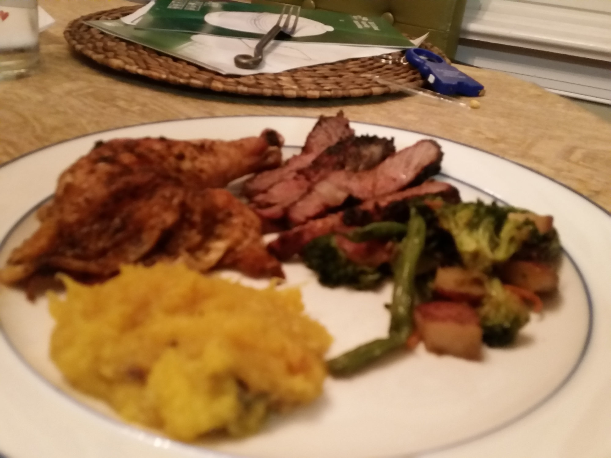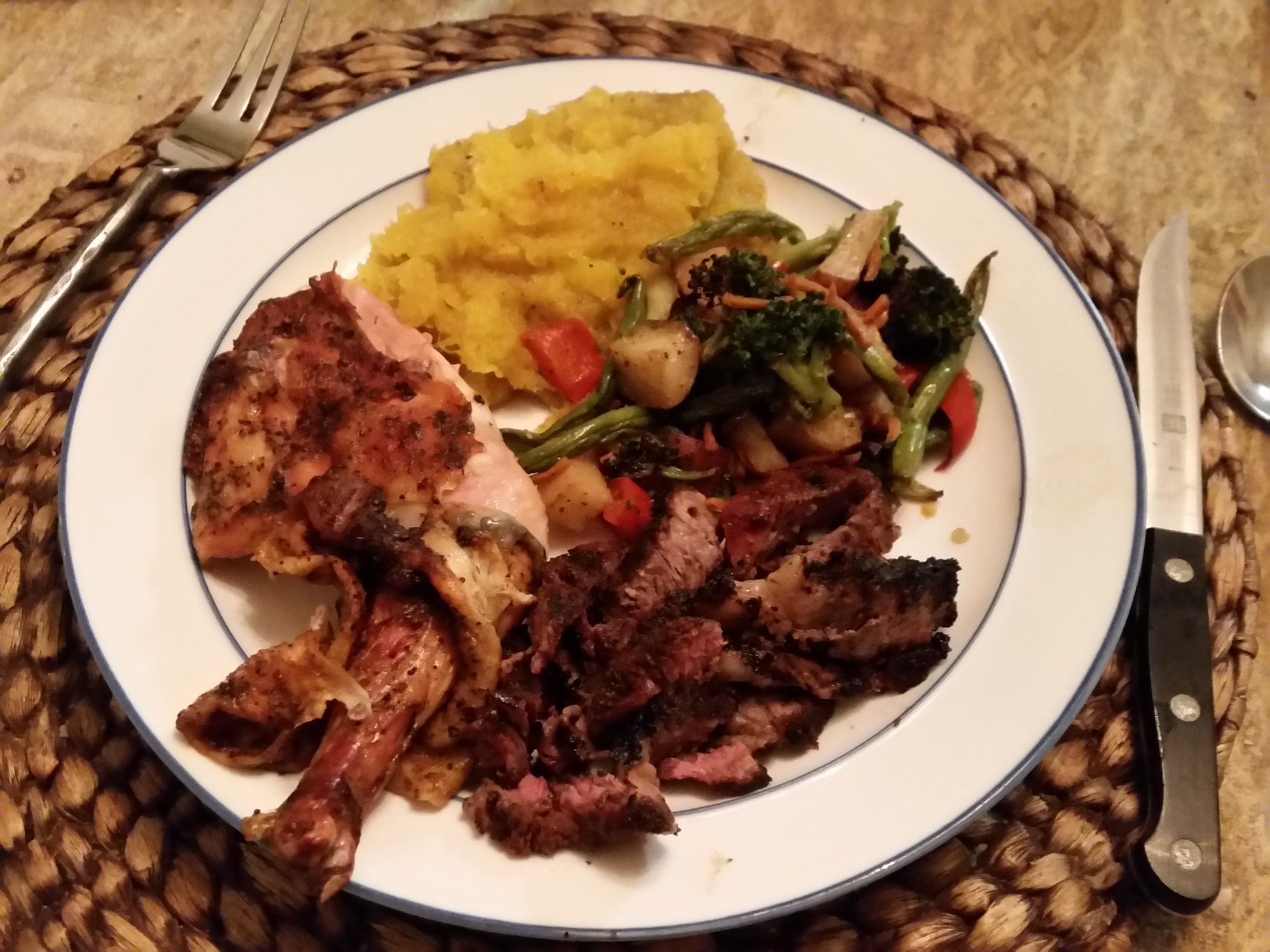 'Sup eggheads! I'm posting the pics from my very first cook on my XL BGE. Went for a spatchcock chicken, acorn squash AND a ribeye steak. Beer of choice was Superb IPA from our lcoal brewery Alewerks in my USS Iwo Jima mug. ('Merica) For prep I rubbed the chix with Cavenders Greek Seasoning (I swear by it) and couldn't resist a sprinkle of Dizzy Dust. Cooked direct at 275 for 2 hours. Then my baby was just screaming for it, so I took the chix off, cranked that biotch up to 700 and then did 5 min a side. Steak was rubbed generously with Dizzy Pig Cow Lick Steak rub. Best steak I've ever made. Hands down. Chicken was awesome! Squash was best my wife has ever had, with a subtle smokey flavor. (They were on the whole time, Eben with the steak). Cheers to you nutz! Glad to be here. Happy Friday to you all. P.S. Thanks Johnny P for EVERYTHING!