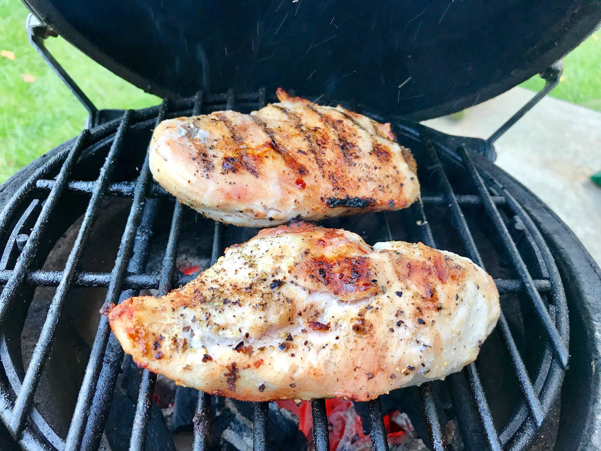 Chicken seasoned with SPOG on the mini after everybody's help to get it to burn. Lean.