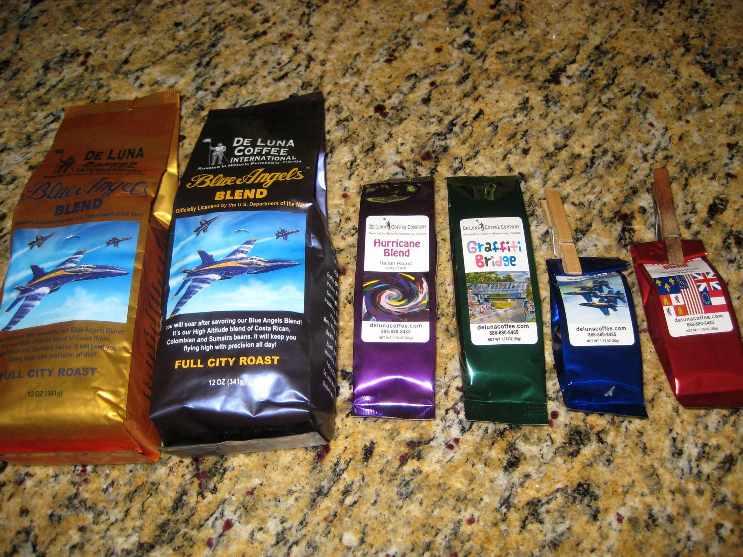 We have friends who live in Pensacola who came up to visit not long ago and arrived with these. As you can tell, I have not had time to try most of them yet. The ones in the big bags are whole beans, so I've gotta get a grinder, or try using the Vitamix. We visit them and watch the Blues fly once, sometimes twice a year. Never gets old. They come up here to enjoy the north Georgia mountains (and ribs).