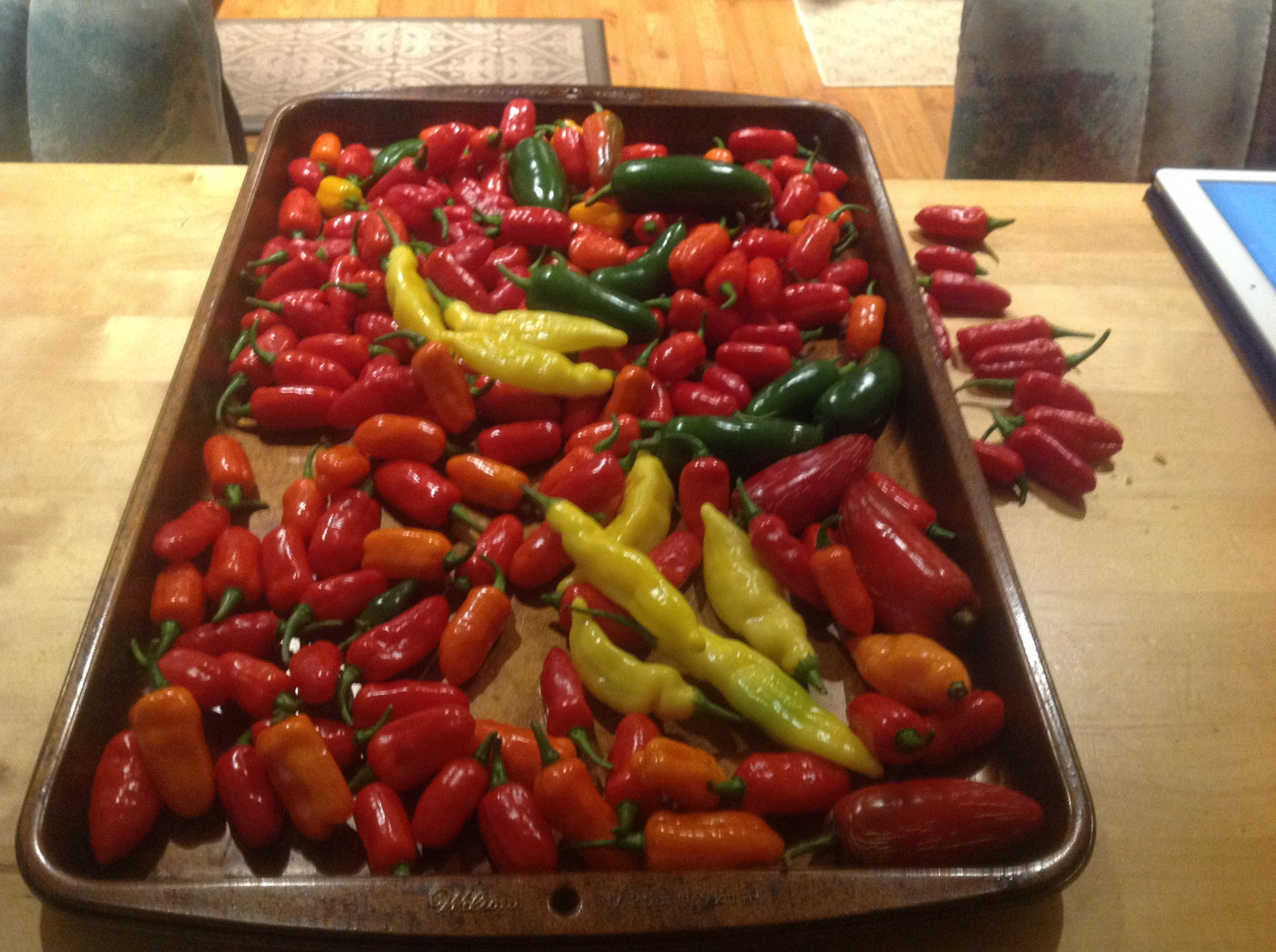 When I get a bumper crop red peppers I will place in a metal tray stems removed and ride around with the tray in my back car window like to use the sun to dry out and then grind in a coffee grinder for some nice fresh hot chile powder.usually 2-3 weeks in the back seat Careful as the dust is very strong.