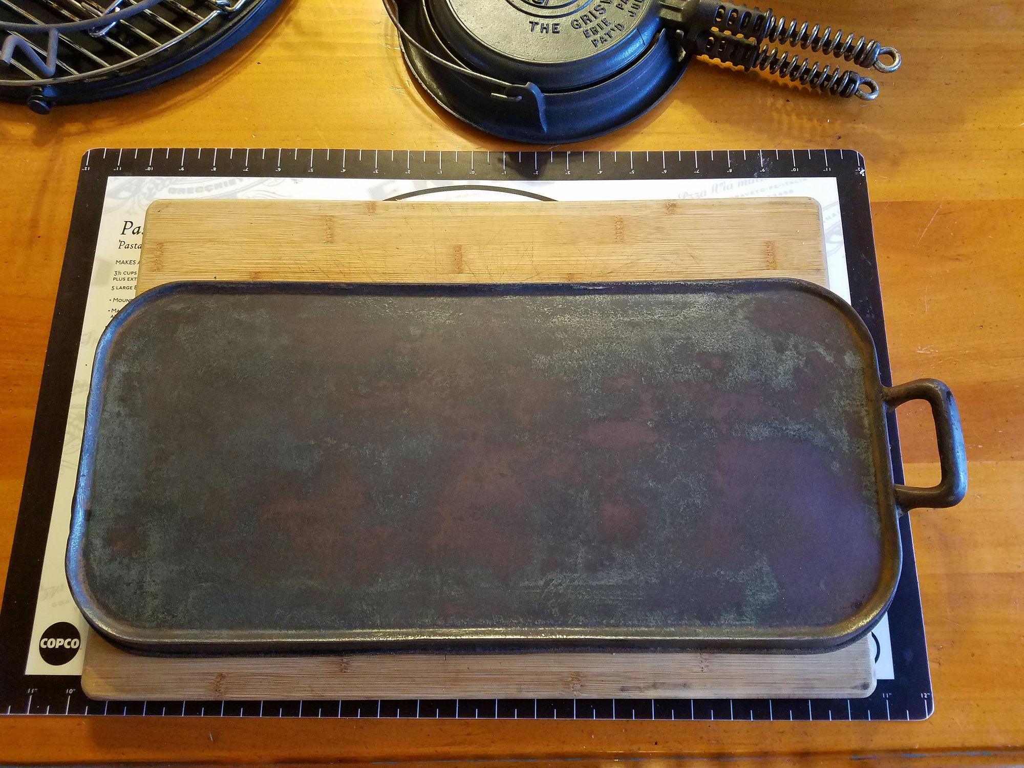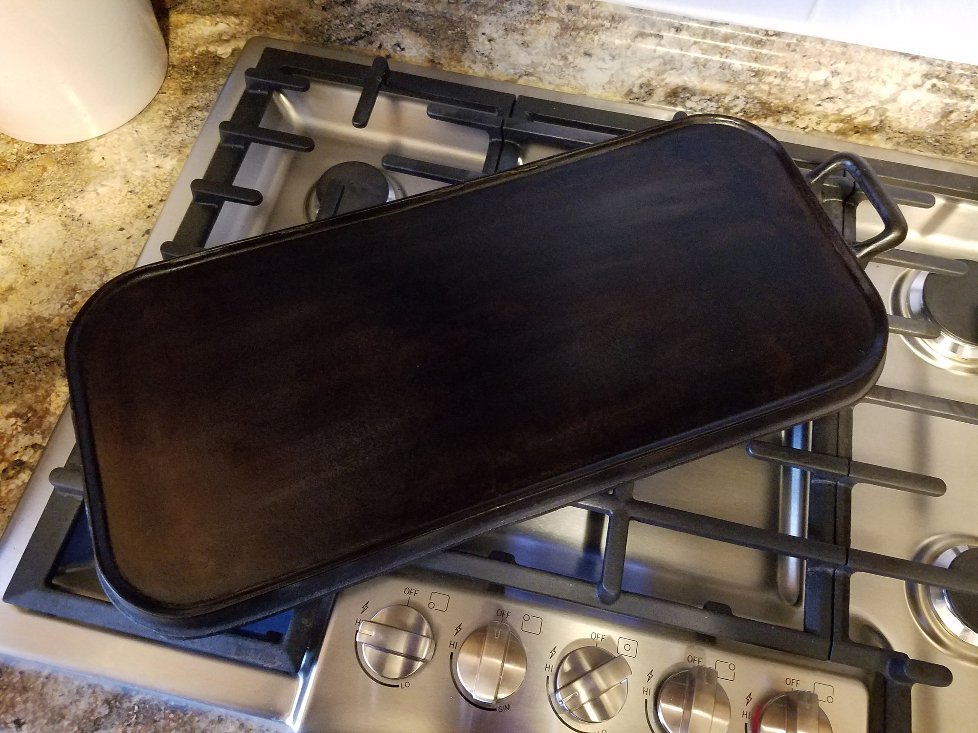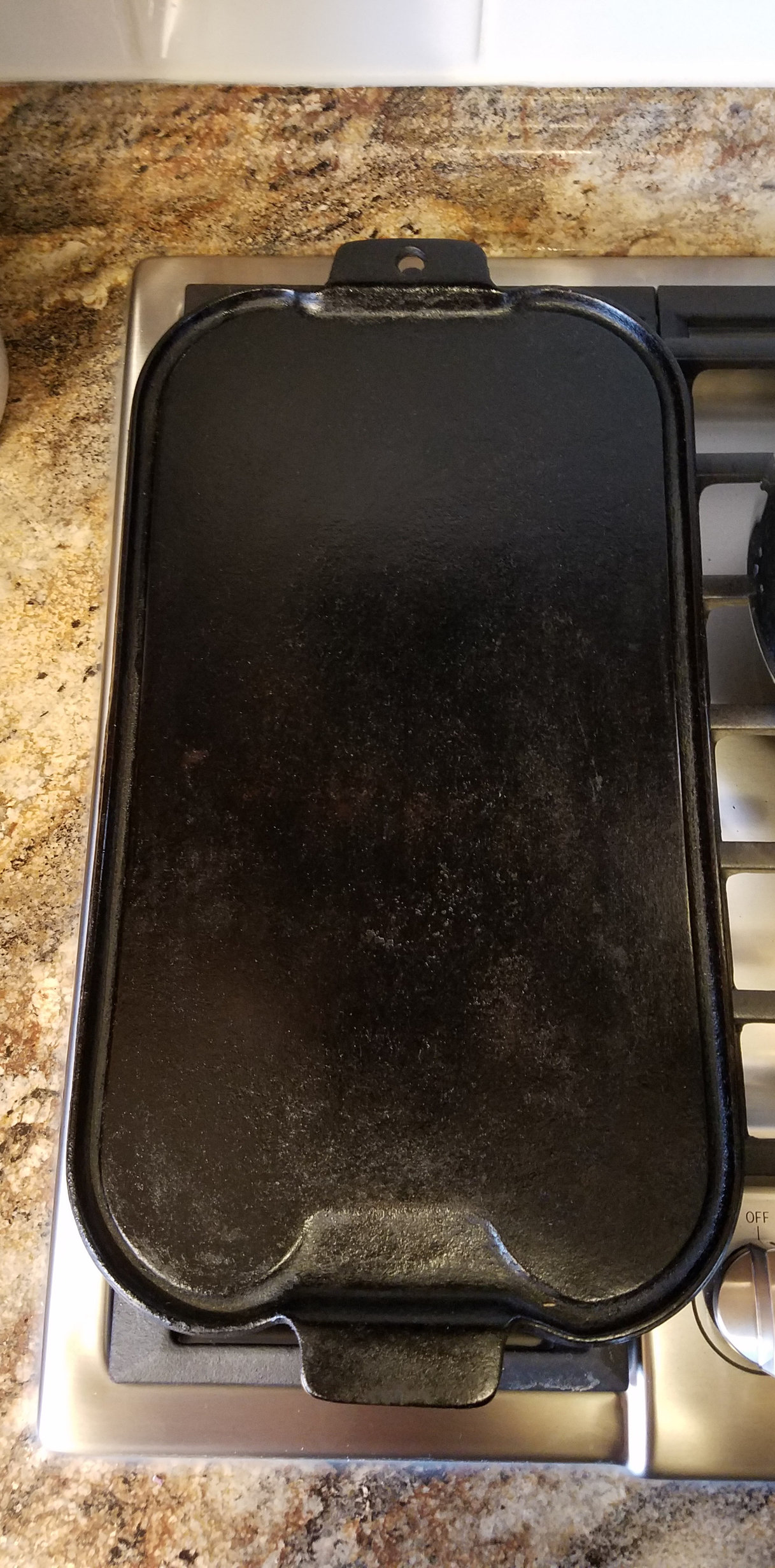 Wags griddle fits perfect on the cooktop. Washed, and seasoned once, back to baseline.