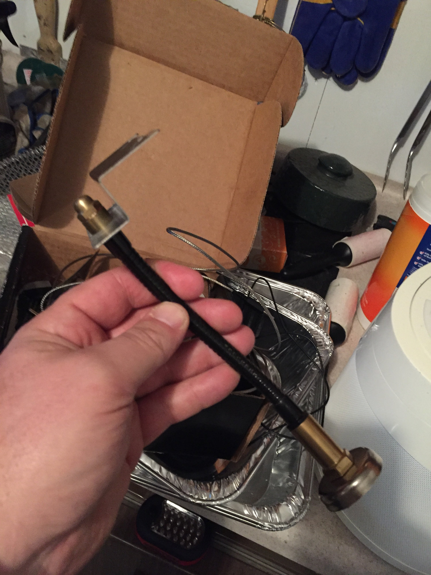 Not totally sure what your ends are, but here are a few pics. One of the stock bracket which is bent to a bit past 90 to hold the brain and sit on any flat surface. The second and third are of the magnetic one that I love from Guru. No copier here. -