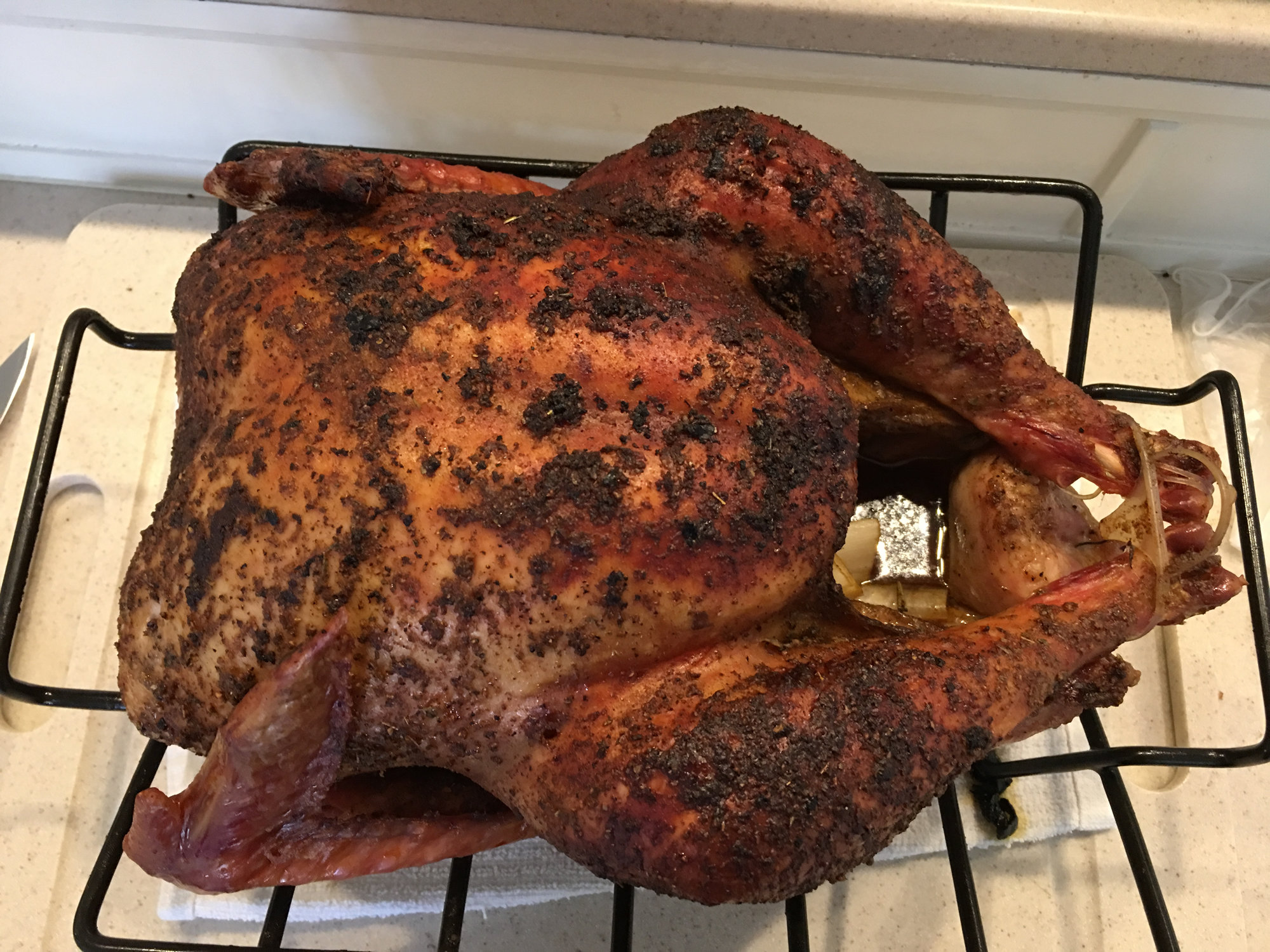 We are celebrating our Thanksgiving today. So, the day begins with a 13.9 lb turkey using Mad Max procedure.