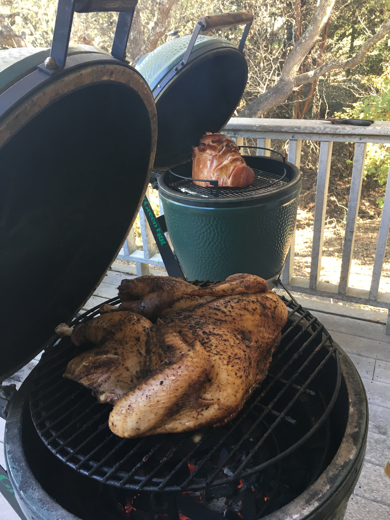 Spatchcocked Turkey and Chicken on the Big Green Egg