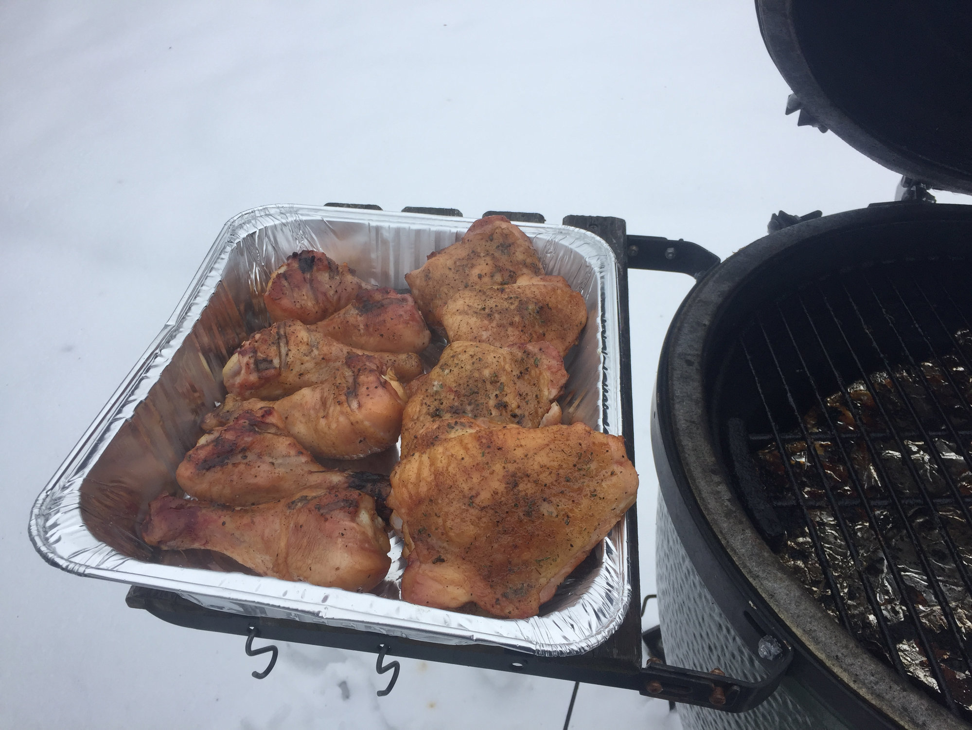 did some thighs with MC garlic and herb (delish) and some drums with sickle busters Texas Hickory. Nothing special except the Rockwood fuel. No smoke added. Plenty for lunches this week