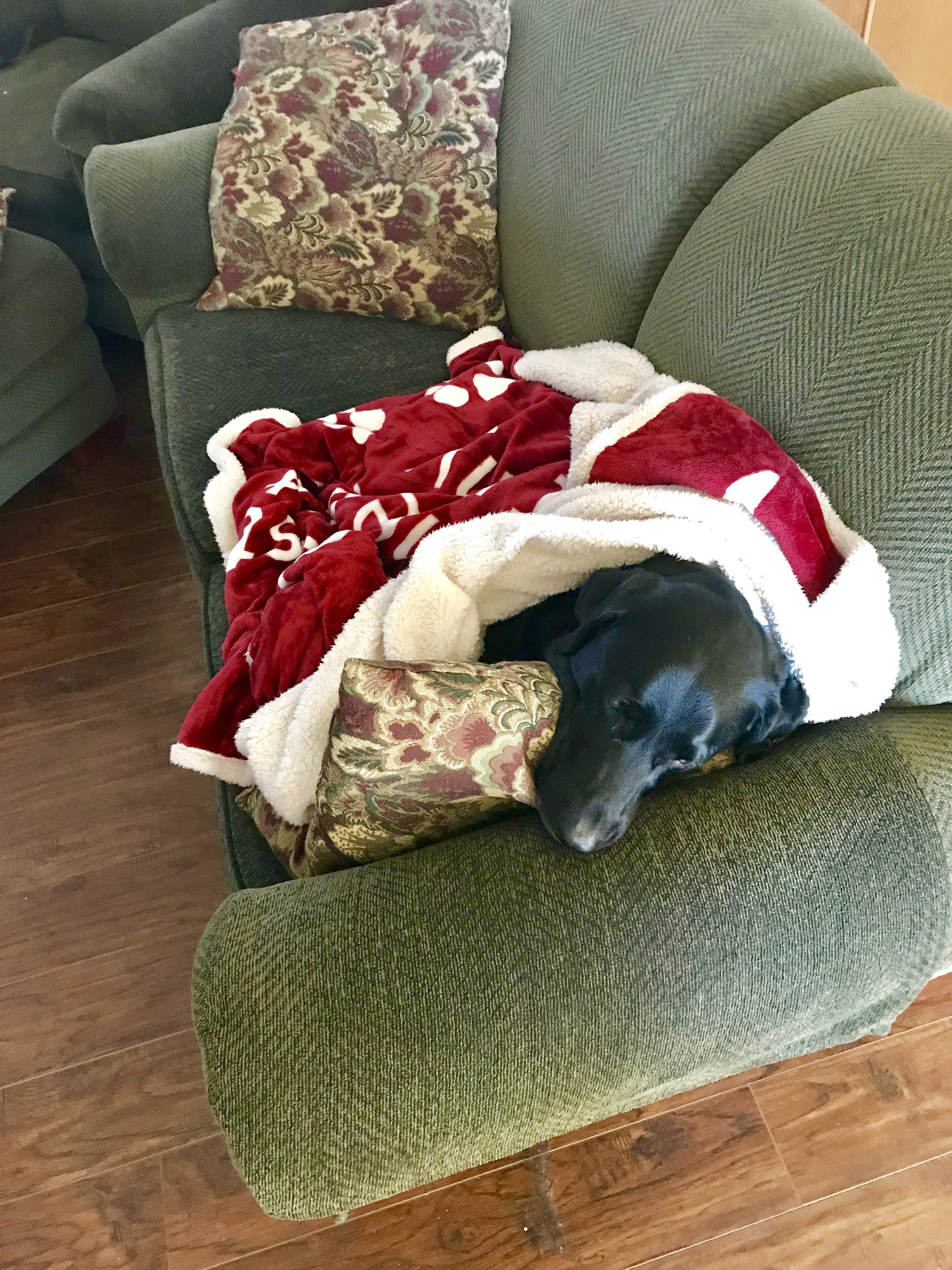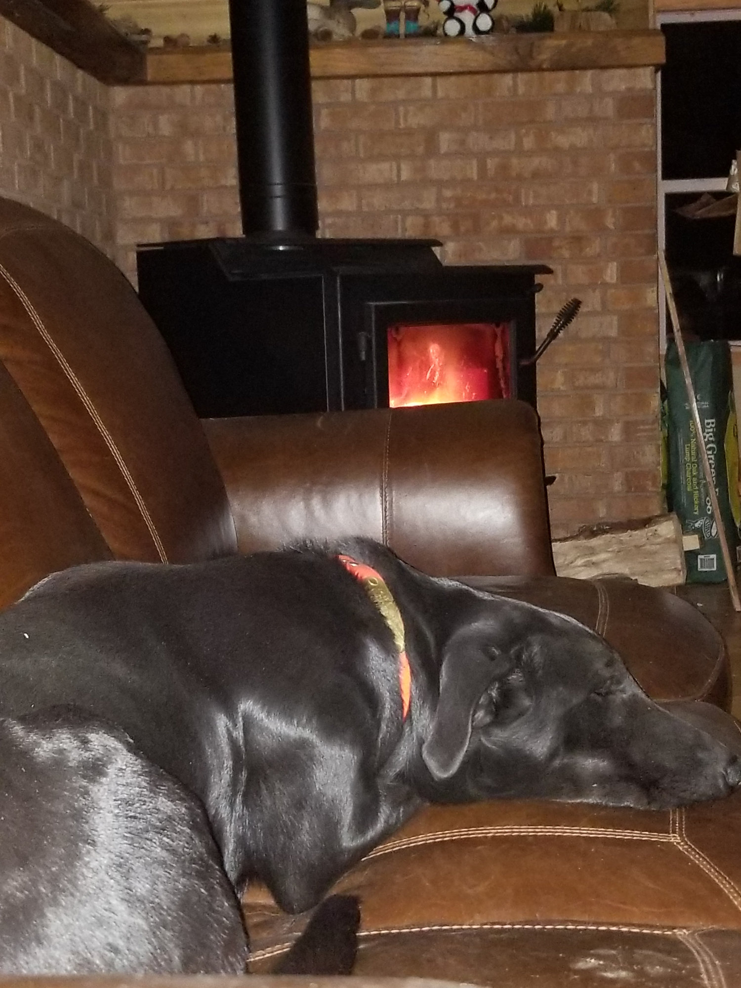 And now me and the duck dogs are resting in front of the fire, listening to the wind howl outside..., no tv, no radio.. . One of them decided to commandeer the couch..he's earned it after a hard week of duck hunting ..we just got home yesterday