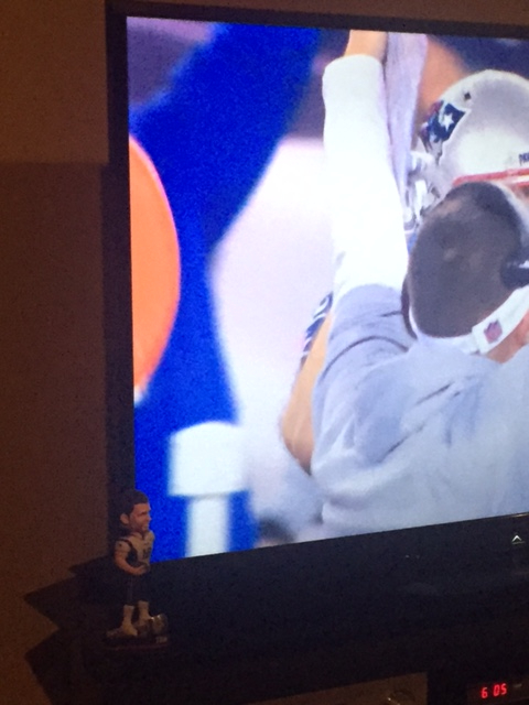 TB12 Bobblehead watches the final celebration!